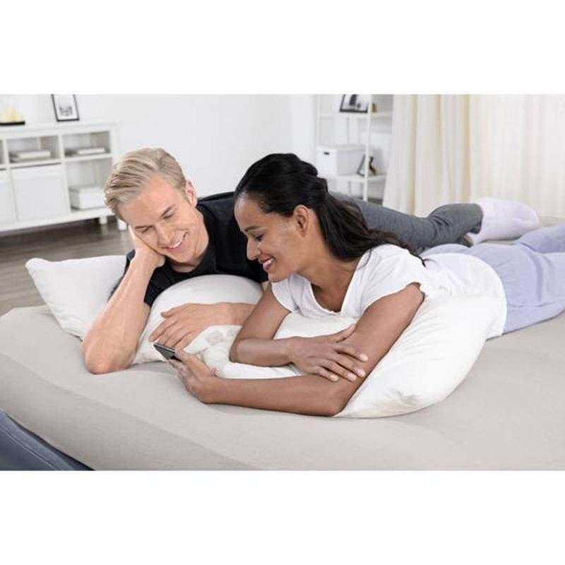 The Bestway BWAY AIRBED QUEEN B.I AC PUMP 203X152X51 - 67925 is a premium queen-size inflatable mattress that combines superior comfort with innovative technology. Measuring 203cm × 152cm × 51cm (80" × 60" × 20"), this airbed comfortably accommodates two adults with its spacious sleeping surface and impressive 300kg (661 lbs) weight capacity. The built-in 220-240V AC pump inflates the mattress to optimal firmness in just 5 minutes, while the advanced Tritech™ construction provides exceptional durability—18% stronger, 44% more stretch-resistant, and retaining 19% more air pressure than standard PVC mattresses. The Ultra-Fresh™ antimicrobial treatment ensures a hygienic sleeping environment by preventing the growth of odor-causing bacteria, mold, and mildew. The layered structure features a non-slip surface that securely holds standard bed sheets in place, enhancing comfort and convenience. Perfect for guests, camping trips, or temporary sleeping arrangements, this airbed includes a storage bag for easy transport and a repair patch for quick fixes. The 51cm raised height offers easy access and a bed-like feel, while the reinforced sidewalls provide stability and edge support throughout the night. Whether used indoors or outdoors, this Bestway airbed delivers reliable performance and lasting comfort through its high-quality materials and thoughtful design.