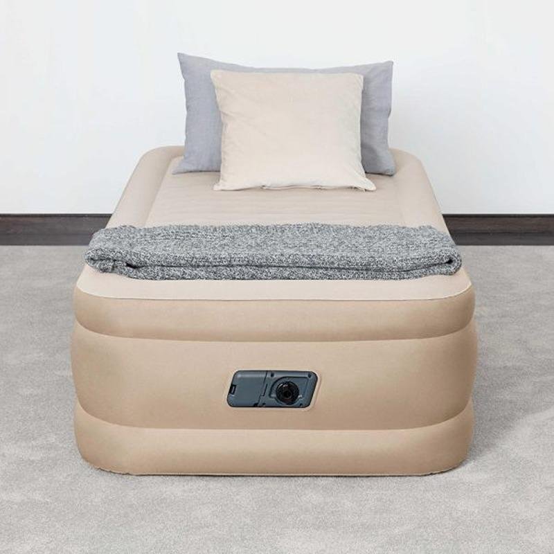 The Bestway BWAY AIRBED TWIN B.I AC PUMP 191X97X46 - 69048 is a premium inflatable mattress designed for superior comfort and convenience. Measuring 191cm in length, 97cm in width, and 46cm in height, this single-person airbed features an innovative surrounding frame that prevents roll-off while enhancing stability during sleep. The advanced Fortech™ construction combines dense polyester fabric with durable PVC, creating a sleeping surface that balances firm support with plush comfort through its unique wave beam structure. A built-in 220-240V electric pump inflates the mattress in just 3-4 minutes, while the generous 46cm height makes entering and exiting the bed effortless. With a 180kg weight capacity, this airbed comfortably supports most adults while maintaining its shape throughout the night thanks to the reinforced Fortech™ material that resists stretching and air loss. The non-slip wave beam surface provides exceptional comfort that rivals traditional mattresses, making it ideal for overnight guests, camping trips, or temporary sleeping arrangements. Practical features include an integrated carry bag for compact storage and transportation, along with a quick-deflation valve for easy takedown. Unlike basic air mattresses, this model's frame-stabilized design prevents the sinking feeling common in inflatable beds, offering hotel-like comfort in a portable package. The thoughtful engineering ensures even weight distribution across the sleeping surface, while the durable materials withstand repeated inflation cycles without compromising performance. Whether used indoors for hosting visitors or taken outdoors for adventures, this airbed delivers reliable comfort through its combination of smart design elements and premium materials. The substantial 46cm elevation eliminates the "sleeping on the floor" sensation, and the sturdy sidewalls provide edge support rarely found in inflatable beds. Perfect for home use or travel, this Bestway airbed transforms any space into a comfortable sleeping area with minimal setup time and maximum convenience.