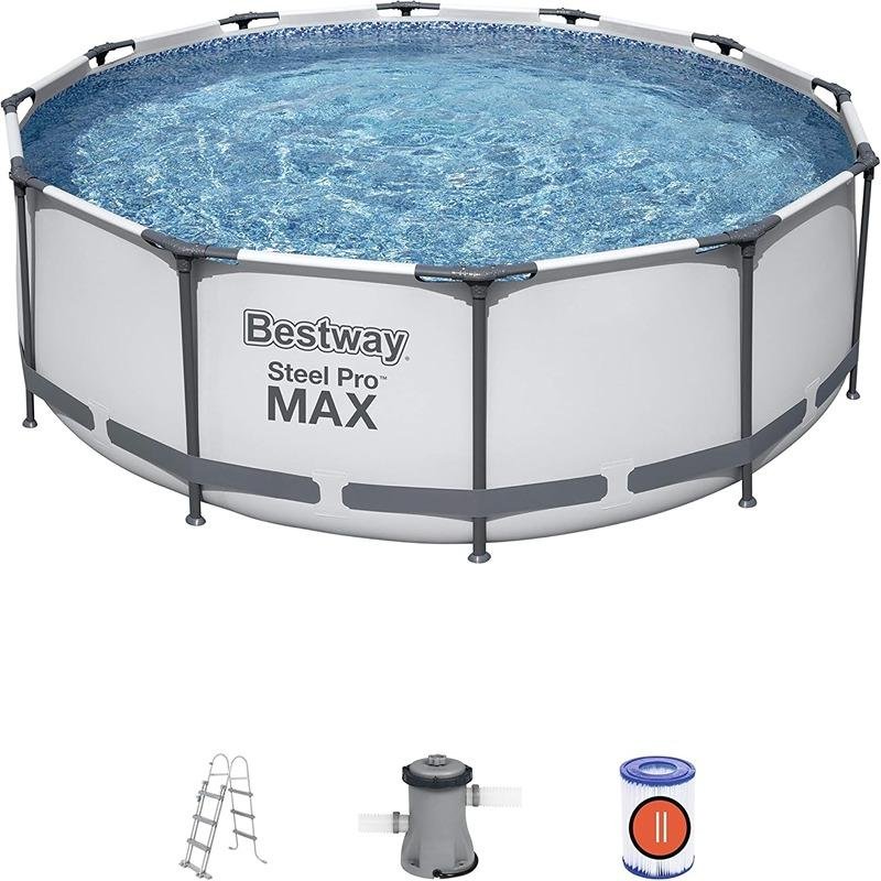 The Bestway BWAY Poolset STLPRO MAX 366x100CM (Model 56418) offers a premium above-ground pool experience designed for larger families and those who want extra depth and space for a more immersive swim. Engineered with Bestway’s Steel Pro MAX frame technology, this pool ensures superior strength, stability, and long-lasting durability. Its corrosion-resistant steel frame provides robust support, while the puncture-resistant DuraPlus™ liner, made with reinforced three-layer material, offers exceptional protection against wear and tear. With a generous water capacity of 9,150 liters at 90% full, this pool is perfect for cooling off on hot days, engaging in light water activities, or simply lounging with friends and family. The pool’s assembly is straightforward, requiring minimal tools and time, and the package includes a filter pump that keeps the water clean and clear throughout the season. Additionally, a safety ladder is included for convenient and secure access, and a flow control drain valve allows for easy emptying and storage when needed. Its round design maximizes the swimming area while saving space in your backyard. The Bestway STLPRO MAX 366x100CM poolset combines durability, comfort, and practicality, making it an excellent choice for households looking to enjoy endless summer fun. Whether you're hosting pool parties, keeping the kids entertained, or seeking a relaxing dip, this pool delivers performance and peace of mind with its reliable build and user-friendly setup. Enjoy an elevated backyard swimming experience with this spacious, affordable, and stylish pool from Bestway.