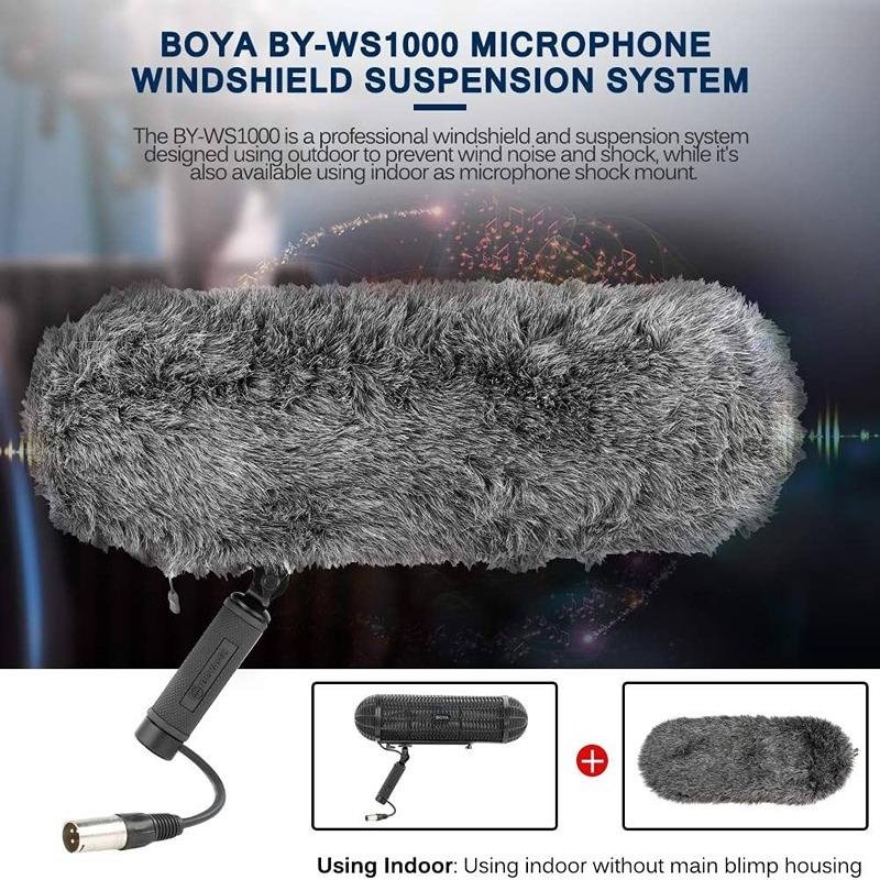 The Boya Professional Windshield and Suspension System (BY-WS1000) is a high-quality, versatile accessory designed to enhance the audio recording experience, especially for those working in outdoor or windy conditions. This system is specifically built to eliminate wind noise, isolate microphones from shocks and vibrations, and provide superior sound clarity for various recording environments, including commercial video production, film, and television. The internal structure and perfect workmanship ensure compatibility with most shotgun microphones that are 320mm in length and 20-22mm in diameter. The BY-WS1000 comes equipped with a high-quality fur windshield that effectively blocks wind noise, allowing for crisp and clear audio capture even in challenging conditions. It also includes an anti-skidding handle with a 3/8" thread mount for secure mounting on tripods or other equipment. Additionally, the system includes a 1/4" adapter for broader compatibility with various setups. The internal coiled XLR cable ensures a tidy and organized connection, while the included carrying pouch makes transportation easy and convenient. This professional-grade windshield and suspension system is not only ideal for outdoor recordings but can also be used indoors as a microphone shock mount, further expanding its utility. Whether you're recording in the field or in the studio, the Boya BY-WS1000 is a must-have accessory to ensure high-quality sound capture with minimal interference from environmental factors.