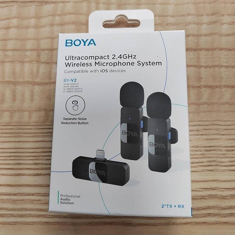 The Boya Wireless Microphone System BY-V2 is a compact and lightweight audio solution designed for seamless integration with Apple iOS devices, including iPhones, iPads, and iPods. This system includes one receiver and two transmitters, making it perfect for capturing high-quality audio from multiple sources simultaneously, ideal for interviews, podcasts, and content creation. The system operates on a reliable wireless frequency, ensuring stable and interference-free sound transmission. The ultracompact and portable design allows for easy use on the go, whether for outdoor shoots or studio work. With a built-in rechargeable lithium battery, the BY-V2 offers up to 9 hours of continuous use on a single charge, ensuring that you can record without worrying about running out of power. Unlike traditional systems, the receiver does not need to be charged, providing an added layer of convenience during extended recording sessions. The system's 95mAh round-to-round battery capacity ensures optimal performance for long periods, providing a reliable solution for your recording needs. Thanks to its user-friendly setup, the Boya Wireless Microphone System is plug-and-play, making it easy to start recording right away. Whether you're a professional vlogger, live streamer, or interviewer, this system offers everything you need to capture clear and crisp audio with no cables involved. With its durable build and long battery life, the Boya BY-V2 is an excellent choice for those seeking high-performance wireless microphones for their Apple iOS devices.
