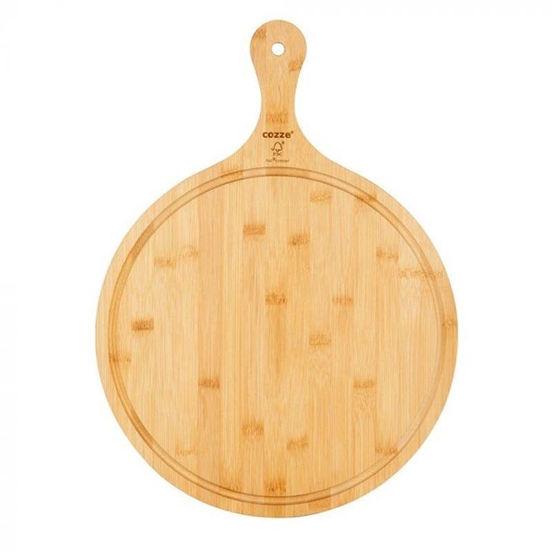 The 90316 Cozze® pizza board with handle is an essential tool for pizza lovers and culinary professionals, designed to elevate your pizza-making experience. Crafted from high-quality bamboo, this pizza board combines functionality with style, featuring a convenient handle that allows for easy maneuvering and serving. With a generous surface area, it provides ample space for preparing, baking, and slicing your favorite pizzas. The board is LFGB approved, ensuring it meets rigorous food safety standards for direct contact with food. The natural bamboo material is not only eco-friendly but also resistant to moisture and odors, making it a durable choice for your kitchen. The smooth surface of the board facilitates easy dough handling, preventing sticking and ensuring a seamless cooking experience. The handle adds an extra layer of convenience, allowing you to easily transfer pizzas from the oven to the table without the risk of burns or spills. Its elegant design makes it perfect for serving pizzas directly to guests, adding a touch of sophistication to any dining occasion. Additionally, the lightweight construction ensures that it is easy to lift and maneuver, making it suitable for both home cooks and professional chefs. Easy to clean and maintain, the Cozze® pizza board is a practical addition to any kitchen, ensuring that you can create delicious homemade pizzas with ease and style.