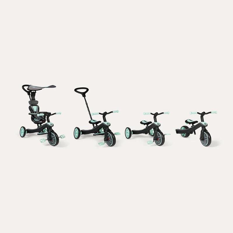 The GLOBBER EXPLORER TRIKE TRICYCLE (4 in 1) in Mint is the ideal tricycle for growing toddlers and young children, designed to adapt seamlessly as your child develops from infancy to early childhood. This versatile tricycle offers four modes: Infant Trike (10-36 months), Guided Trike (18-36 months), Training Trike (24-36 months), and Balance Bike (2-5 years), ensuring maximum usage. The patented wheel mechanism allows for easy, tool-free transformation between modes, making the transition smooth and simple as your child’s motor skills and independence evolve. In Infant Trike mode, the tricycle comes with a secure 5-point safety harness, soft shoulder pads, a high-back seat, and a safety bar to ensure your little one is comfortable and protected. As your child grows, the footrest and adjustable seat height provide continued comfort, and in the Guided, Training, and Balance Bike modes, the trike helps to enhance balance and coordination while encouraging active play. The robust, durable frame ensures that this tricycle lasts through every stage of growth. Perfect for both boys and girls, the GLOBBER EXPLORER TRIKE in Mint helps promote outdoor play and physical activity while providing a safe and engaging way for kids to learn and grow. With its sleek Mint color and functional design, this tricycle is sure to provide hours of enjoyment and learning for your little one.