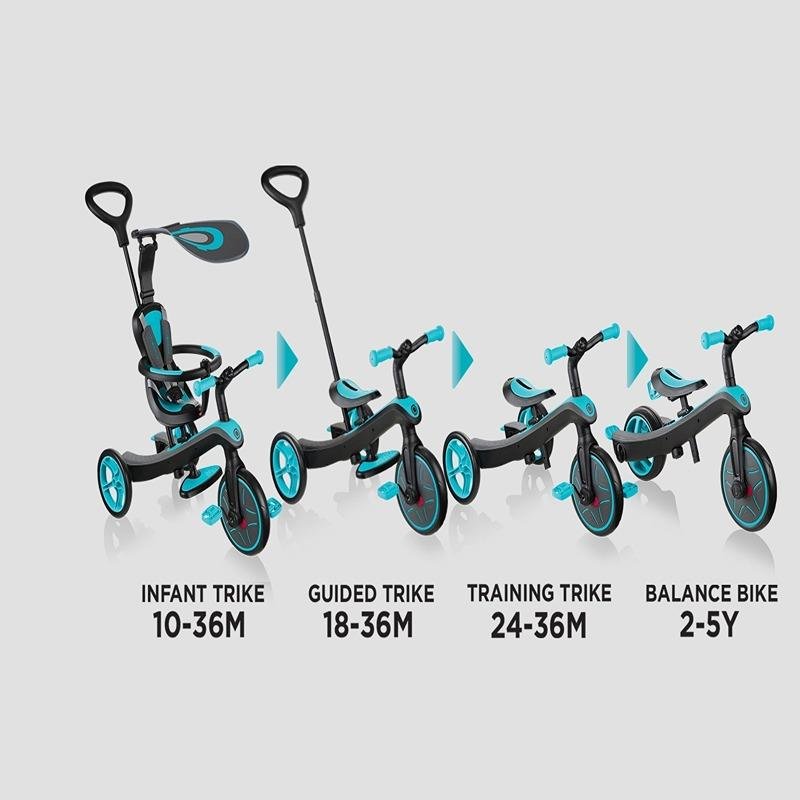 4-in-1 design: Infant Trike, Guided Trike, Training Trike, Balance Bike