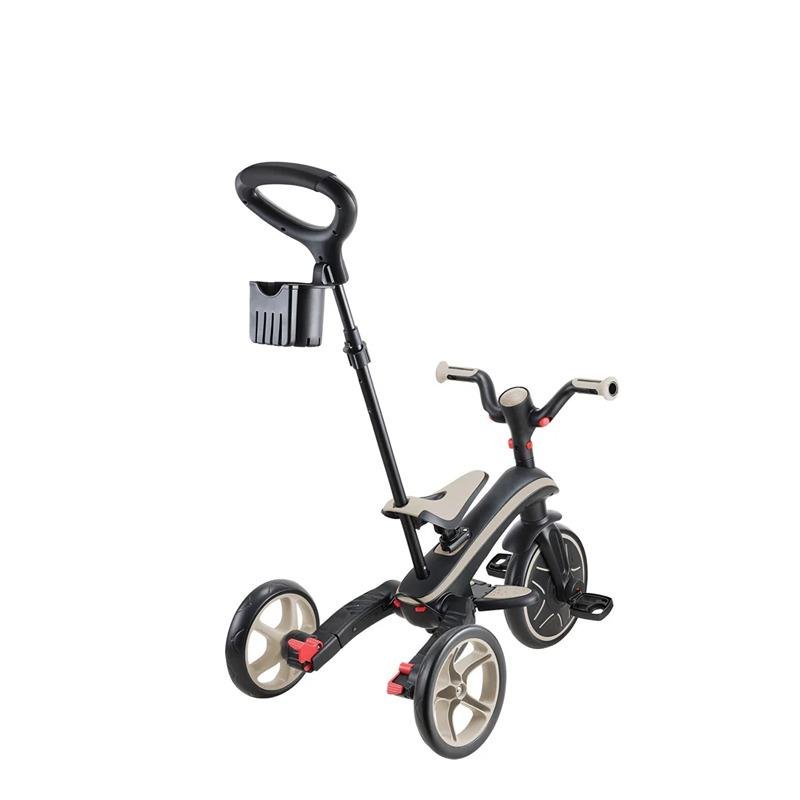 The GLOBBER FOLDABLE EXPLORER TRIKE TRICYCLE (4 in 1) in Taupe is the perfect all-in-one solution for growing toddlers, designed to support them through four essential developmental stages. Starting from the Infant Trike (10-36 months), this versatile tricycle transforms into a Guided Trike (18-36 months), Training Trike (24-36 months), and finally a Balance Bike (2-5 years), adapting to your child’s needs as they develop. The GLOBBER FOLDABLE EXPLORER TRIKE stands out with its patented scissor folding system, which allows for easy folding and compact storage, making it ideal for parents on the move. This trike is designed for convenience, featuring a 100% tool-free design and a patented wheel mechanism that ensures simple transformations between modes without the need for tools. The trike also offers a 2-height adjustable parent handle, giving you full control over steering and guiding your child. Additionally, the 2-height adjustable saddle ensures a comfortable fit as your child grows. For enhanced comfort, the foldable high-back seat, smart handlebars, and removable footrest make it easy for your little one to enjoy their ride. The EVA foam wheels provide a smooth and stable ride across various surfaces. Whether you are out for a walk in the park or embarking on an adventure, the GLOBBER FOLDABLE EXPLORER TRIKE in Taupe is the ideal companion for encouraging balance, coordination, and outdoor play. This tricycle is as functional as it is stylish, making it the perfect ride for your child as they explore the world around them.