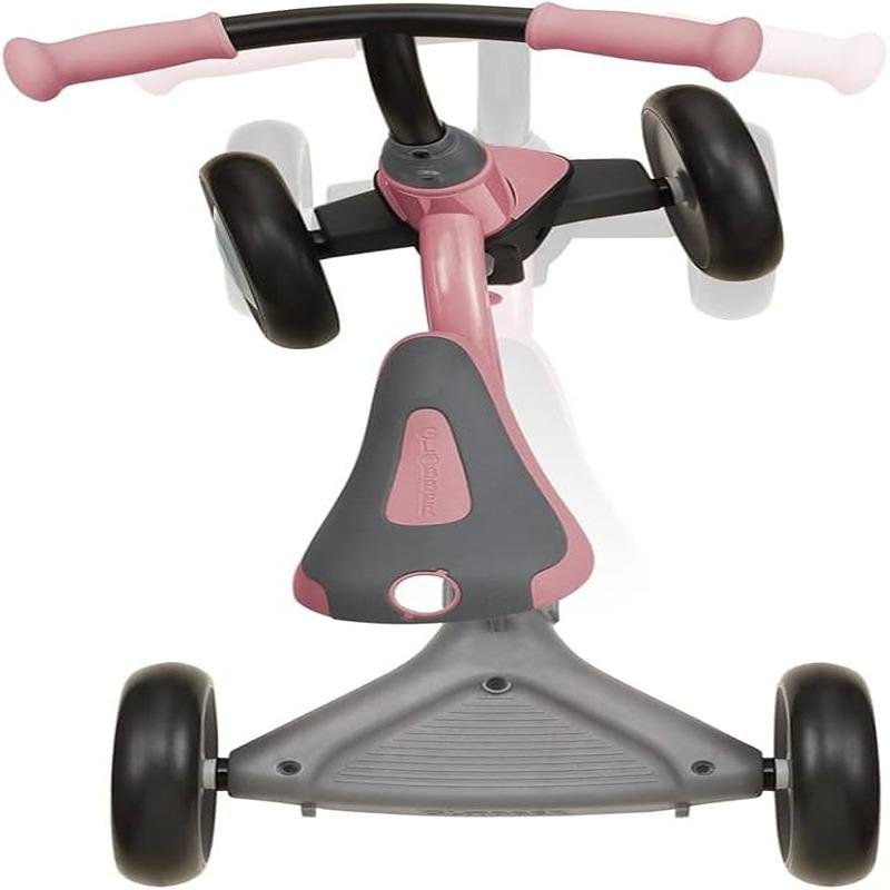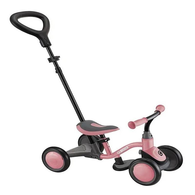 The GLOBBER LEARNING BIKE DELUXE (3 in 1) in Pastel Pink is the perfect all-in-one solution for growing toddlers, designed to support your little one from their first year and adapt as they grow. This versatile balance bike transforms seamlessly between three key modes: ride-on, learning bike, and walking bike, ensuring maximum usage and flexibility. Equipped with a patented steering system, it offers four different riding modes, including direction-locked mode for stability, classic hand steering, lean-to-steer mode for more natural control, and a combined mode for advanced maneuvering. The dual-height adjustable saddle ensures comfort for your growing child, while the ergonomic curved handlebars with anti-slip TPR grips provide extra safety and control. The GLOBBER LEARNING BIKE DELUXE features a 2-height adjustable parent handle with an integrated bottle holder, a removable storage bag with an 8L capacity for added convenience, and a wide, removable footrest for extra comfort in ride-on mode. The rear rotative system, which adjusts the rear wheels based on the front wheel’s movement, enhances the bike's maneuverability. The balance bike is equipped with two sets of wheels—150mm EVA foam wheels—that offer a smooth, puncture-free ride. As your child grows, easily transform the bike from a learning bike to a walking bike, making this the perfect investment for your little one's early development. The practical design, combined with the sturdy construction and thoughtful features, makes this balance bike ideal for fostering balance, coordination, and confidence while giving your child an enjoyable and comfortable ride.