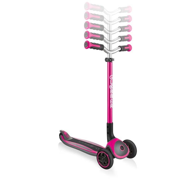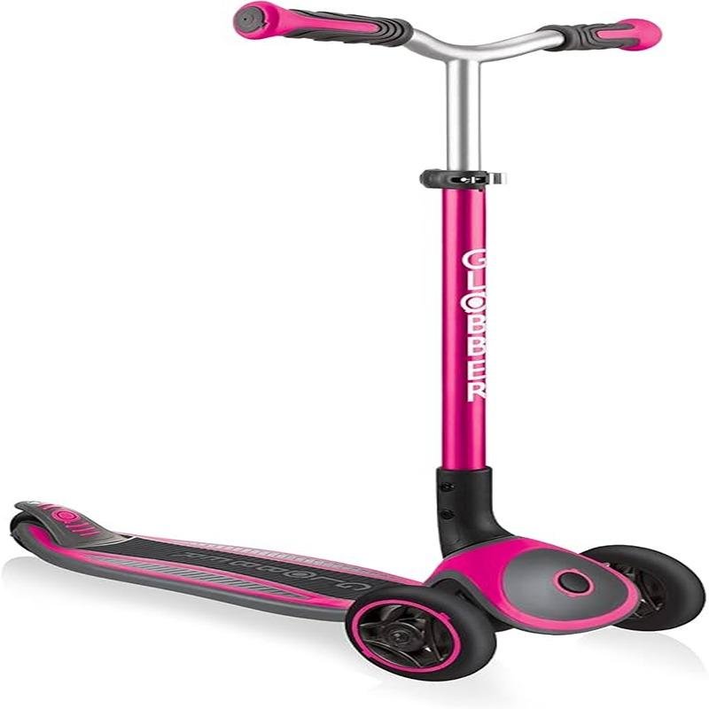 The GLOBBER MASTER SCOOTER in Deep Pink is a premium 3-wheel scooter designed for kids aged 4 to 14 years. Equipped with a patented folding system and an easy-to-use push button, this scooter offers convenient storage and portability in trolley mode, making it perfect for on-the-go families. The scooter features a 5-height adjustable, super-wide, and curved aluminium T-bar with comfortable dual-coloured TPR ergonomic grips, allowing for a custom fit as your child grows. For added safety, the GLOBBER MASTER SCOOTER comes with a patented steering lock button that helps children learn balance by fixing the steering system of the front wheels to move only forward and backward. Once they’re ready, the steering lock can be released for a lean-to-steer experience. The scooter's wide deck is made from anti-slip EVA foam, providing comfort and stability during long rides. With high-quality 125mm front wheels and 80mm rear wheels mounted on ABEC 5 bearings, the GLOBBER MASTER SCOOTER offers smooth, efficient rides, while the bi-injection composite brake ensures durability and safety. Supporting up to 50kg, it’s designed for children of various sizes and ensures long-lasting performance, making it a great investment for years of scooting fun.