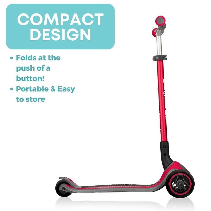 The GLOBBER MASTER SCOOTER - RED - 660-102 is the perfect scooter for kids aged 4 to 14, offering a blend of safety, comfort, and style. Designed to grow with your child, the scooter features a 5-height adjustable T-bar, ensuring a customized ride for children of varying heights, making it ideal for long-term use. The extra-wide, curved handlebars enhance control and comfort, giving young riders a stable and enjoyable experience. The scooter also comes with a premium anti-slip EVA foam deck, providing added grip and comfort, reducing the risk of slips while scooting. Its patented push-button folding system allows for quick and easy folding, making it easy to store and transport. The extra-wide deck supports riders up to 50 kg, ensuring durability and stability, even on longer rides. The 3-wheel design enhances balance, making it easier for young riders to maintain control, especially when learning how to scoot. With a weight of just 2.79 kg, the GLOBBER MASTER SCOOTER is light enough for kids to maneuver while still being sturdy and strong. The red color adds a fun and dynamic look, appealing to young adventurers. Whether your child is cruising through the neighborhood or practicing their skills at the park, the GLOBBER MASTER SCOOTER provides a safe and comfortable ride that is sure to keep them excited to ride again and again.