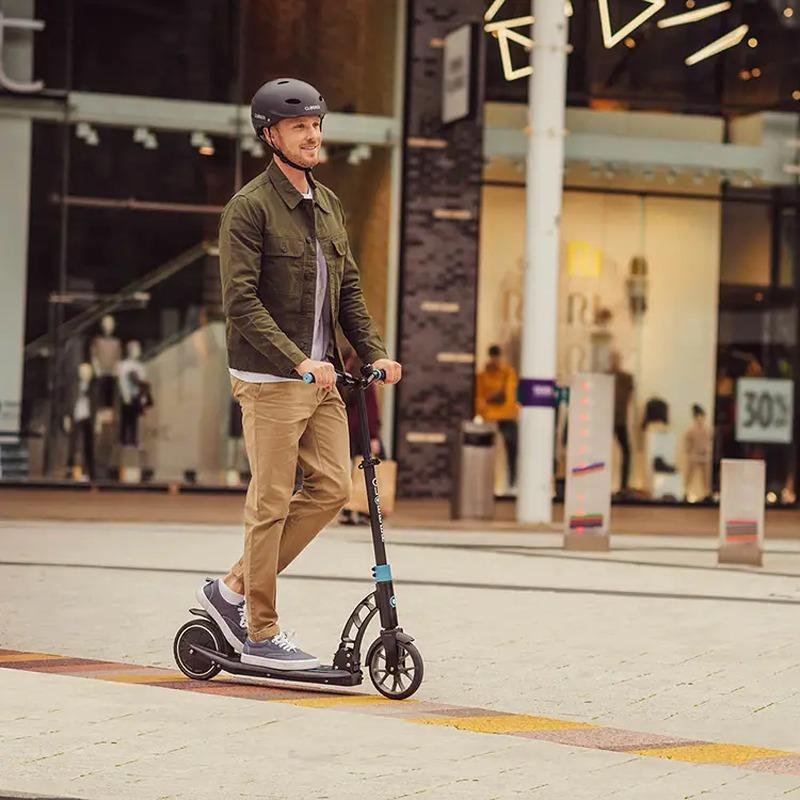 The GLOBBER ONE K E-Motion 15 Electric Scooter - Sky Blue/Black is a top-tier electric scooter designed for adults and teens aged 14 and up, offering a perfect combination of comfort, speed, and safety. Powered by a 250W brushless hub motor and a 36V, 2.6Ah lithium battery, the scooter delivers a top speed of 20 km/h and a range of up to 15 km, making it ideal for city commutes or leisurely rides. Featuring high-quality, 203mm puncture-free rubber tyres with front suspension, the ONE K E-Motion 15 ensures smooth rides across various pavement surfaces, absorbing shocks for maximum comfort. The adjustable, wide aluminium T-bar allows for a customizable ride with three height settings, while the robust aluminium deck with anti-slip TPR padded grip tape supports up to 100 kg, providing both durability and stability. Safety is a key focus with the scooter’s dual-brake system (mechanical rear brake & E-ABS) and integrated rear ISO brake lights, along with front LED lights and a bell for added visibility and control. The integrated folding system makes storage and portability easy, allowing you to quickly fold it into a compact size for convenience. The scooter’s sleek, stylish design in Sky Blue/Black gives it a modern look, while the practical features and reliable performance make it an ideal choice for teens and adults seeking a safe, efficient, and enjoyable electric scooter.