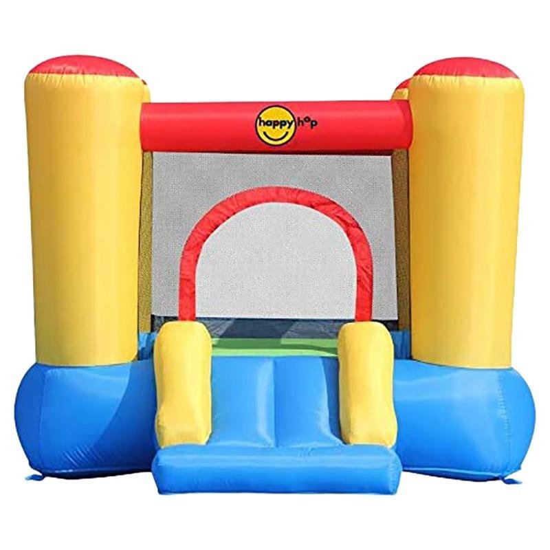 Bring the excitement of a theme park right to your backyard with the HAPPYHOP Bouncy Castle with Slide – 9520HAPPYHOP, a perfect playtime companion designed to thrill and delight children for hours. Crafted from high-quality, puncture-resistant materials, this inflatable bouncer is engineered for durability, safety, and fun. With its vibrant colors and imaginative castle design, it immediately captures kids’ attention and sets the stage for adventurous play. The large bouncing area offers ample space for multiple children to jump, bounce, and release energy safely. A built-in slide adds extra excitement, allowing children to climb up and zoom down continuously in a loop of giggles and joy. The mesh sidewalls ensure maximum visibility and ventilation while keeping kids safely inside. Quick and easy to set up with the included air blower, the entire unit inflates in minutes and just as easily deflates for compact storage. Whether it's a birthday party, weekend gathering, or everyday backyard fun, the HAPPYHOP Bouncy Castle with Slide creates a playful environment that promotes physical activity, coordination, and social interaction. It’s suitable for indoor spaces like large halls as well as outdoor lawns or patios. Parents will appreciate its safety features and sturdy build, while kids will be drawn to the cheerful, fantasy-themed design and the endless fun it provides. This bouncy castle is a smart investment in quality play, ensuring safe, active entertainment that keeps little ones engaged and away from screens. A carry bag is included for convenience, and the setup requires minimal effort, making it a hassle-free addition to any play setting.