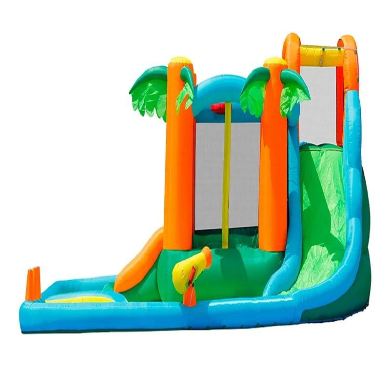 Transform your backyard into a thrilling oasis of fun with the HAPPYHOP The Oasis 7-in-1 Inflatable Play Center – 9264, a vibrant and action-packed inflatable that offers seven exciting activities in one massive structure. Designed to entertain and engage children aged 3 to 10, this inflatable features a spacious bounce area, tall slide, climbing wall, water gun, splash pool, tunnel, and basketball hoop, creating endless opportunities for both physical play and imaginative adventures. Measuring an impressive 430 x 375 x 205 cm, The Oasis is large enough to accommodate multiple kids at once, making it perfect for parties, family gatherings, or daily outdoor play. Constructed from high-quality laminated PVC and durable nylon, this inflatable is built to endure active use while ensuring safety with mesh sides and soft, padded surfaces. The included heavy-duty blower ensures the structure inflates in under two minutes, while ground stakes keep it securely anchored even during high-energy play. With vibrant tropical colors and a dynamic design, The Oasis captures the spirit of summer and adventure. It also comes with a convenient carry bag for easy transport and storage, a repair kit for quick fixes, and a water hose attachment for splash features. Whether kids are climbing, sliding, bouncing, or getting soaked, this 7-in-1 inflatable delivers non-stop entertainment and promotes healthy activity, coordination, and social interaction. A must-have for families looking to upgrade outdoor playtime, The Oasis is your go-to for summer fun.