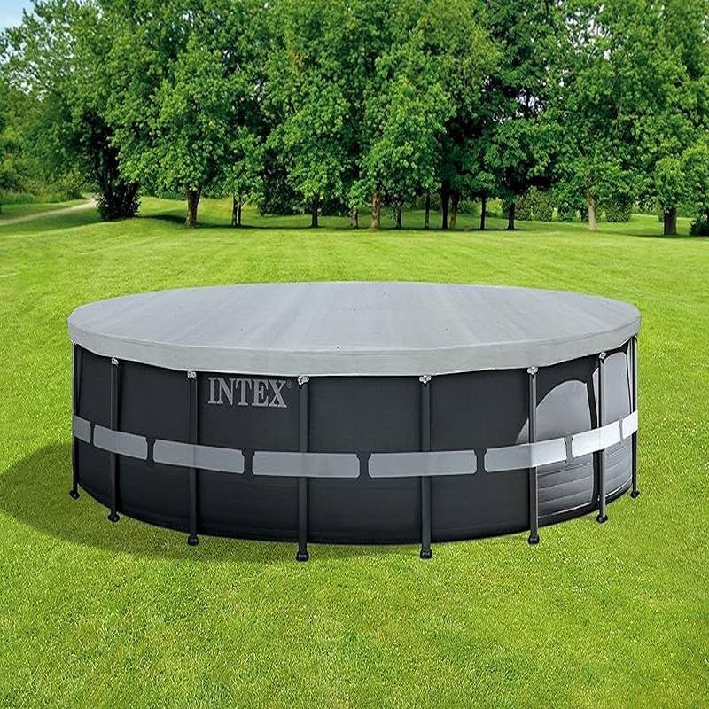 The INTEX DELUXE POOL COVER (for 18' Pools) - 28041 is the ideal solution for keeping your above-ground pool clean and protected when not in use. Designed specifically for 18-foot pools, this durable and high-quality cover offers reliable protection against debris, leaves, dirt, and environmental elements. Made with strong, weather-resistant material, this Deluxe Pool Cover helps maintain your pool's water clarity, reduce cleaning time, and extend the life of your pool by protecting it from the elements during off-seasons. The increased durability of the cover helps prevent damage from the sun, rain, and wind, ensuring long-term use. The cover is equipped with a rope tie to keep it securely in place, preventing it from blowing off during strong winds or storms. At a weight of just 3.843 kg, it’s lightweight and easy to handle while being tough enough to stand up to the rigors of outdoor use. Its design fits 18-foot pools, covering the pool effectively and providing a snug, secure fit. Whether you’re protecting your pool during the winter months or simply covering it after a swim, the Intex Deluxe Pool Cover provides peace of mind and ensures your pool remains clean, ready for use, and in great condition for longer. With easy-to-use functionality, this pool cover is an essential addition to your pool care kit, offering a hassle-free way to protect your investment.