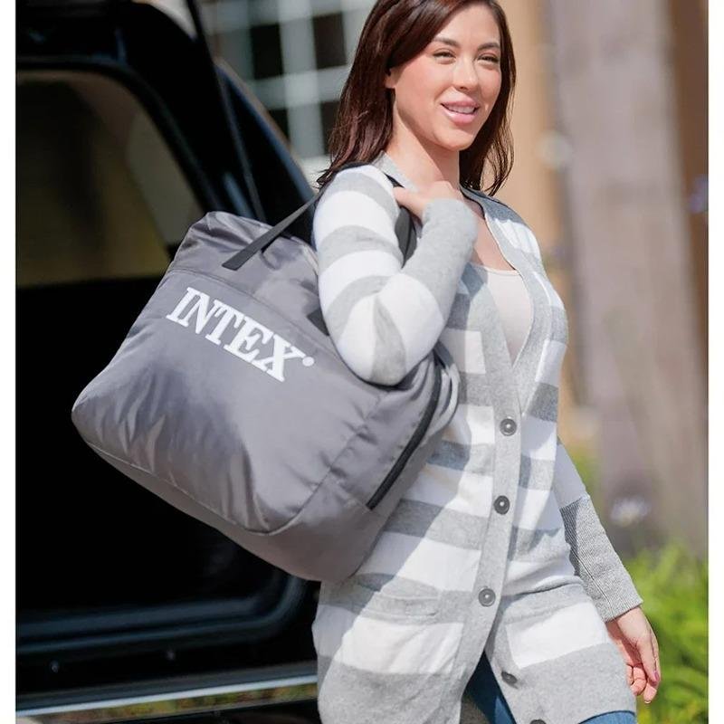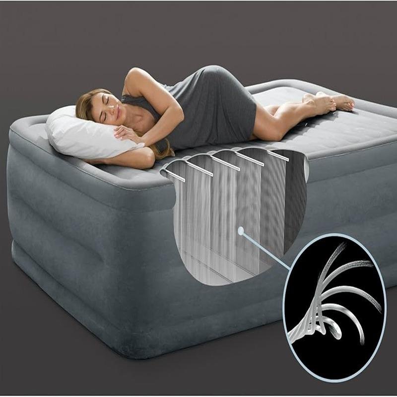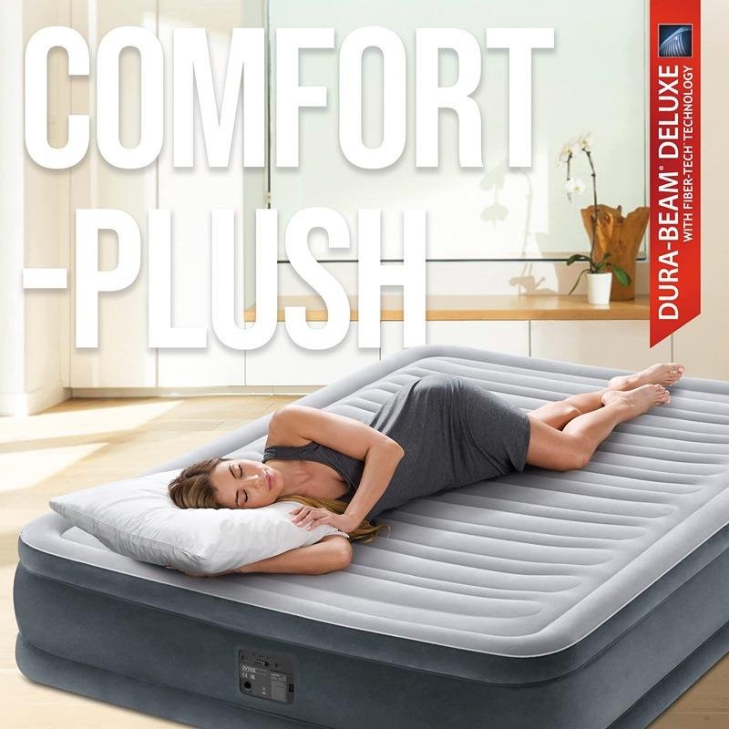 The Intex Full Comfort-Plush Airbed (67768) is the perfect solution for a restful and comfortable night’s sleep. Designed with a double-layer velvety surface, it conforms to the body’s natural contours, offering exceptional comfort for a full night's rest. This airbed is ideal for both home use and when hosting guests, providing a cozy sleeping space without compromising on comfort. Its internal structure is reinforced with horizontal support beams that enhance stability, while the airbed’s mid-rise height ensures easy access for everyone. The powerful built-in QuickFill™ electric pump makes setup a breeze, allowing for rapid inflation and deflation in just a few minutes. This airbed's light gray color and sleek design make it a versatile addition to any bedroom or guest room. Weighing just 6.94 kg, it is lightweight and portable, making it easy to store or transport when not in use. The combination of durable materials, modern design, and practicality ensures that the Intex Full Comfort-Plush Airbed provides long-lasting comfort and convenience. Whether you're accommodating guests, enjoying a weekend getaway, or need an extra bed for sleepovers, this airbed offers everything you need for a restful experience.