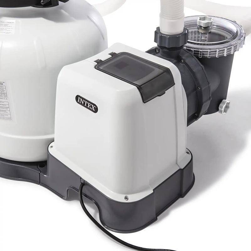 The INTEX SX2800 Sand Filter Pump is an essential addition to your pool maintenance toolkit, designed to keep your pool water clean and sanitized throughout the summer season. With a powerful flow rate of 2800 gallons per hour, this pump utilizes advanced Hydro Aeration Technology to enhance water circulation and clarity, ensuring a refreshing swimming experience. The sand filter is not only effective but also convenient, requiring sand replacement only every five years, which significantly reduces maintenance time and costs. The pump is equipped with a versatile 6-way valve that allows for various functions including filtration, backwash, rinse, recirculate, drain, and close, providing you with complete control over your pool's water management. Additionally, the built-in 24-hour automatic timer enables you to set the operating time, making it easier to maintain a consistent cleaning schedule. This filter pump is compatible with a range of pool types, including the Ultra XTR Rectangular Frame (975x488 cm) and Ultra XTR Round Frame (732 cm), making it a versatile choice for different pool setups. Constructed from durable plastic and finished in a sleek white color, the INTEX SX2800 is designed to withstand the elements while delivering reliable performance. With a voltage requirement of 220-240 V, this pump is efficient and effective, ensuring your pool remains a clean and inviting oasis.