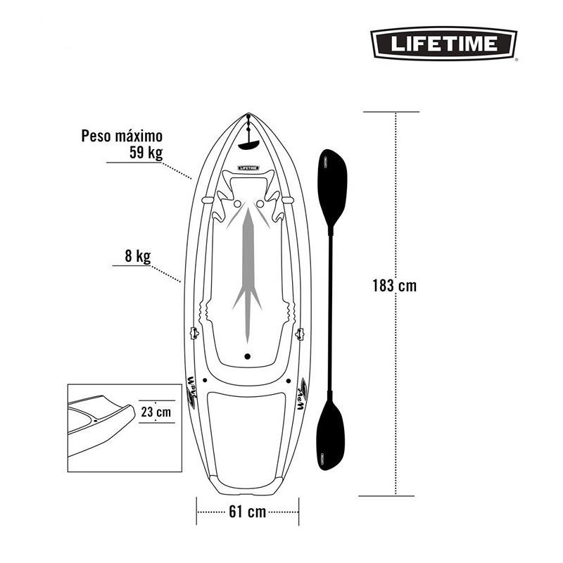 The Lifetime Kenai 103 Sit-On-Top Kayak 91146 is designed for both novice and experienced paddlers seeking a versatile and stable watercraft for recreational use. With a length of 10 feet and a width of 30 inches, this kayak offers ample space for gear and passengers, making it ideal for fishing, exploring lakes, and enjoying leisurely paddles. Constructed from high-density polyethylene, the Kenai 103 is built to withstand the rigors of outdoor use while providing excellent durability and UV resistance. Its sit-on-top design ensures easy entry and exit, while the adjustable padded seat and backrest enhance comfort during extended outings. The kayak features multiple storage compartments, including a rear tank well and a front storage hatch, allowing you to keep your essentials secure and accessible. The Kenai 103 is equipped with built-in footrests for added stability and comfort, and its lightweight design makes it easy to transport and maneuver on the water. Additionally, the kayak includes multiple fishing rod holders, making it a perfect choice for anglers. With a maximum weight capacity of 275 lbs, it accommodates a variety of users and gear. Whether you're navigating calm waters or tackling mild rapids, the Lifetime Kenai 103 Sit-On-Top Kayak promises a reliable and enjoyable experience on the water.