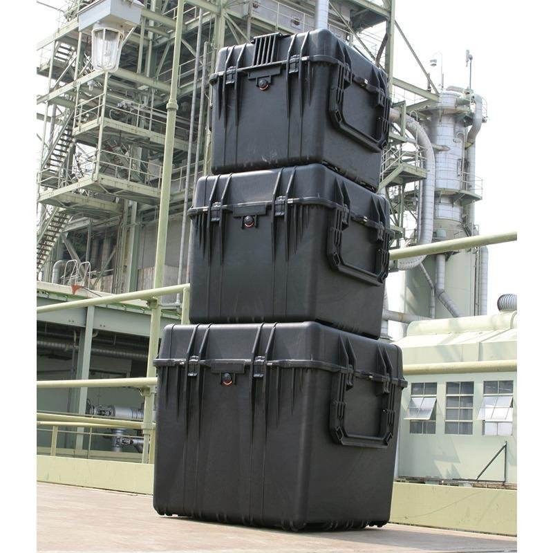The Pelican 0370 Protector Case is the epitome of rugged protection for sensitive equipment, designed to withstand the most extreme environments since 1976. Whether facing the frigid temperatures of the Arctic or the intense heat of battle, this case ensures that your valuable gear remains safe and secure. Constructed to be both watertight and dustproof, the Pelican 0370 features a built-in purge valve that equalizes pressure during altitude or temperature changes, making it ideal for travel. With a temperature rating of -10 to +210°F (-23 to +99°C), this case is versatile enough for various applications. The case is secured with six easy-open double throw latches—two on each side and two in front—providing quick access while ensuring a tight seal. Stainless steel hasp protectors add an extra layer of security, allowing for padlocks to be used for additional protection. The oversized handles are designed for two-person operation, enabling a secure grip for carrying heavy loads. For added convenience, the Pelican 0370 is stackable, making it easy to store multiple cases without taking up excessive space. Additionally, a 0357 Mobility Kit, which includes four steel casters with nylon wheels and a pull strap, is available as an accessory, enhancing portability. The Pelican 0370 is the perfect choice for professionals who demand reliability and durability in protecting their sensitive equipment.