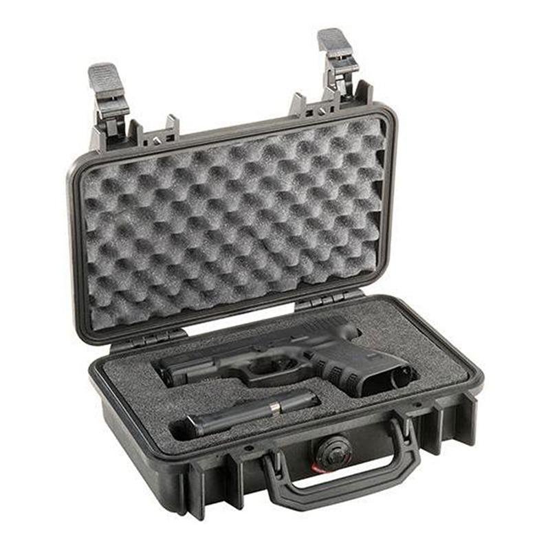 The Pelican 1170 Protector Case in black (model 1170-000-110) is the ultimate solution for safeguarding sensitive equipment in the most demanding environments. Since 1976, Pelican has been synonymous with durability and reliability, providing protection against extreme conditions, whether it be the frigid cold of the Arctic or the intense heat of battle. This case is specifically designed for hand-held electronics, featuring a Pick N Pluck™ foam interior that allows for customizable organization and secure storage. The Pelican 1170 is watertight, crushproof, and dustproof, ensuring that your valuable gear remains safe from the elements. Its open cell core with a solid wall design makes it both strong and lightweight, making it easy to transport without compromising on protection. The case is equipped with easy-open double-throw latches for quick access, while the automatic pressure equalization valve balances interior pressure and keeps water out, providing an additional layer of security. The O-ring seal further enhances its watertight capabilities, and stainless steel hardware ensures long-lasting durability. Whether you are a professional in need of reliable equipment protection or an adventurer seeking to safeguard your gear, the Pelican 1170 Protector Case is engineered to meet your needs with uncompromising quality.