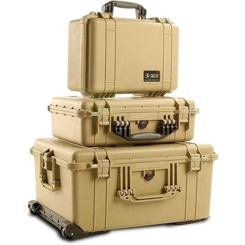 The Pelican 1660 Protector Case in Desert Tan (model 1660-020-190) is the ultimate solution for safeguarding sensitive equipment in the most demanding environments. Since its inception in 1976, Pelican has been synonymous with durability and reliability, offering cases that withstand extreme conditions, from the frigid cold of the Arctic to the intense heat of battle. This rugged case is designed with large, fold-down handles that accommodate two-person lifting, making it easy to transport. Equipped with four robust polyurethane wheels featuring stainless steel bearings, the Pelican 1660 ensures smooth mobility across various terrains. Its watertight, crushproof, and dustproof construction guarantees that your valuable gear remains protected from the elements. The case features an open cell core with a solid wall design, providing a strong yet lightweight structure. The interior includes a three-level Pick N Pluck™ foam system with a convoluted lid foam, allowing for customizable organization of your equipment. Additionally, the retractable extension trolley handle and easy-open double-throw latches enhance usability, while stainless steel hardware and padlock protectors offer added security. An automatic pressure equalization valve balances interior pressure and keeps water out, complemented by an O-ring seal for maximum protection. For those looking to personalize their case, a nameplate service is available, making the Pelican 1660 not just a protective case, but a tailored solution for your specific needs.