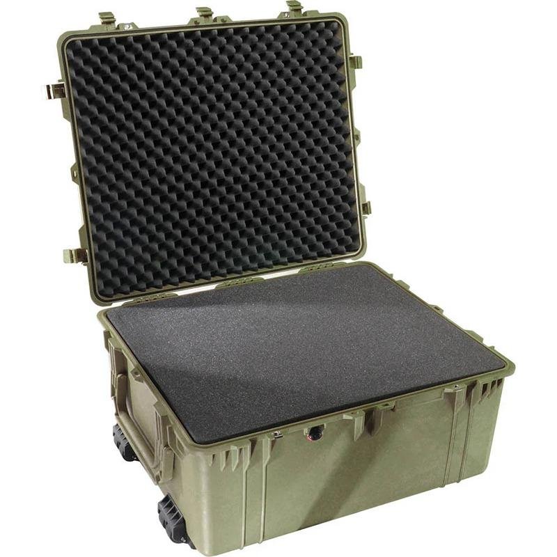 The Pelican 1690 Protector Case in OD Green (model 1690-000-130) is the ultimate solution for safeguarding sensitive equipment in the most demanding environments. Since its inception in 1976, Pelican has been synonymous with durability and reliability, and the 1690 case exemplifies this legacy. Engineered to withstand extreme conditions, this rugged case is watertight, crushproof, and dustproof, ensuring that your valuable gear remains protected from the elements. The case features a robust open cell core with a solid wall design, making it both strong and lightweight. It is equipped with four strong polyurethane wheels with stainless steel bearings for smooth mobility, complemented by large, fold-down handles that allow for easy transport by two people. The retractable extension trolley handle provides added convenience, while the innovative Pick N Pluck™ foam with a convoluted lid allows for customizable organization of your equipment. Security is paramount, with stainless steel padlock protectors and easy-open double-throw latches that keep your contents safe. Additionally, the automatic pressure equalization valve balances interior pressure and prevents water ingress, while an O-ring seal further enhances the case's waterproof capabilities. For those looking to personalize their case, Pelican offers a nameplate service, making the 1690 not just a protective solution but also a customizable one.