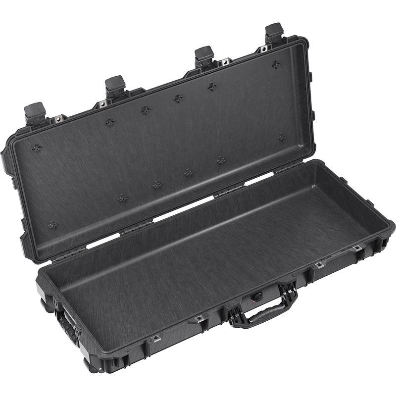 The Pelican 1700NF, WL/NF, in Black (model 017000-0010-110) is a premium protective case designed for those who demand the highest level of durability and security for their equipment. This case is watertight, crushproof, and dustproof, ensuring that your valuable gear remains safe in any environment. Unlike its foam-filled counterparts, the 1700NF offers a spacious interior without foam, allowing for customizable storage solutions tailored to your specific needs. The automatic pressure equalization valve facilitates easy transport across varying altitudes, while the easy open double-throw latches provide quick access to your items. Security is enhanced with lock protectors on all four locking hasps, ensuring that your equipment is safeguarded against unauthorized access. The case features strong polyurethane wheels that provide smooth mobility, and the wheeled end is flattened for added stability during transport. Constructed with durable stainless steel hardware, the Pelican 1700NF promises longevity and resilience. The folding over-molded handles on both ends and the side offer multiple carrying options, making it easy to maneuver in tight spaces. Additionally, the O-ring seal enhances its watertight capabilities, ensuring that your equipment is protected from moisture and dust. This new generation of Pelican long cases boasts upgraded features, including wider wheel placement for improved balance and stability, making it an ideal choice for professionals in photography, military, and outdoor activities.