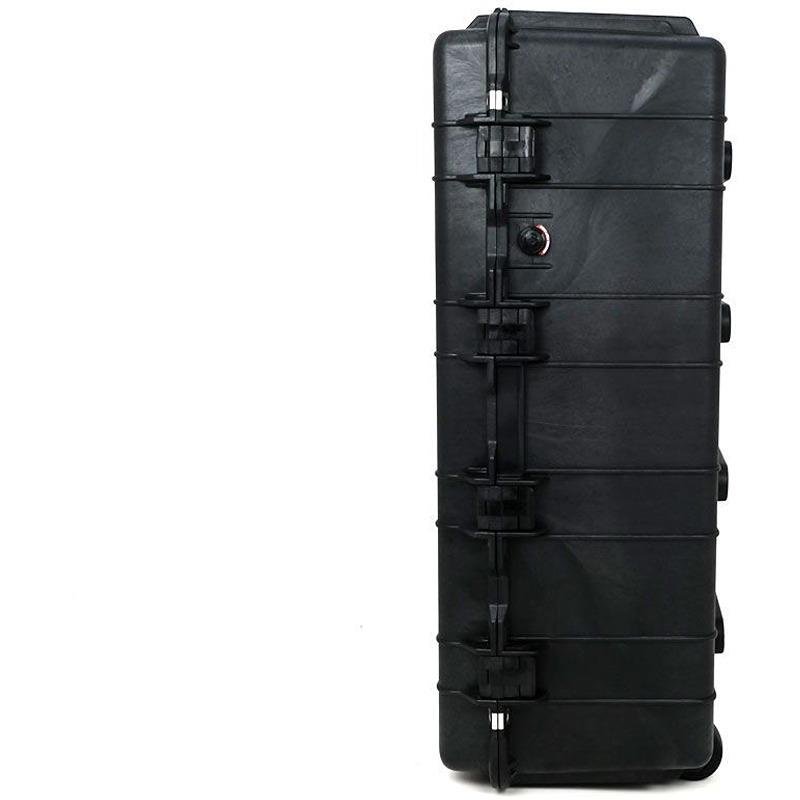 The Pelican 1730NF Protector Case is engineered to safeguard sensitive equipment in the most demanding environments. Since its inception in 1976, Pelican has been synonymous with durability and reliability, making it the go-to choice for professionals who require robust protection for their gear. This case is designed to withstand extreme conditions, from the frigid temperatures of the Arctic to the intense heat of battle, ensuring that your valuable equipment remains secure and functional. The Pelican 1730NF is watertight, crushproof, and dustproof, providing unparalleled protection without the added bulk of foam, thus maximizing storage space. Its easy-open double-throw latches and fold-down handles enhance portability and accessibility. The case features an open cell core with a solid wall design, making it both strong and lightweight. Stainless steel hardware and padlock protectors add an extra layer of security, while the automatic pressure equalization valve balances interior pressure and keeps water out. The O-ring seal further enhances its watertight capabilities. For those who need to monitor humidity levels, an optional humidity gauge changes color when levels exceed 40%. Additionally, a manual pressure equalization valve is available for further customization. The Pelican 1730NF also offers personalized nameplate services, allowing users to customize their case for easy identification. This case is the ultimate solution for anyone needing reliable protection for sensitive equipment in any environment.