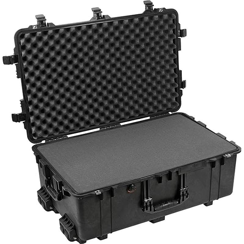 The Pelican 1730 Protector Case, model 1730-000-110, is engineered to safeguard sensitive equipment in the most demanding environments. Since its inception in 1976, Pelican has been synonymous with durability and reliability, making it the go-to choice for professionals who require robust protection for their gear. This case is watertight, crushproof, and dustproof, ensuring that your valuable equipment remains secure regardless of the conditions. The 5-piece foam set provides customizable cushioning, while the easy-open double-throw latches and fold-down handles enhance usability during transport. Constructed with an open cell core and solid wall design, the Pelican 1730 is both strong and lightweight, making it ideal for travel. Stainless steel hardware and padlock protectors add an extra layer of security, while the automatic pressure equalization valve balances interior pressure and keeps water out. The O-ring seal further enhances its watertight capabilities. For those who need to monitor humidity levels, an optional humidity gauge changes color above 40%, providing a visual cue for equipment safety. Additionally, a manual pressure equalization valve is available for further convenience. Personalization options, including a nameplate service, allow users to customize their case for identification. Whether you are in the arctic cold or the heat of battle, the Pelican 1730 Protector Case is designed to withstand the elements and protect your sensitive equipment.