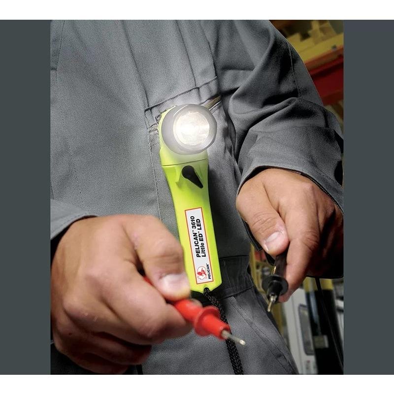 The Pelican 3610C is a robust and versatile right-angle flashlight designed for both professional and personal use. Engineered with Pelican's renowned durability, this flashlight is built to withstand the rigors of demanding environments while providing reliable illumination. Featuring the latest “Deep Mount” LED technology, the 3610C delivers an impressive output of 183 lumens, ensuring optimal visibility in various conditions. Its hands-free design allows for easy operation, making it ideal for tasks that require both hands, while the stainless steel clip ensures secure attachment to belts or pockets for convenient access. The flashlight is powered by four AA alkaline batteries, which are included, providing long-lasting performance. With an unconditional lifetime guarantee of excellence, users can trust in the quality and reliability of the Pelican 3610C. Whether you are in a professional setting, such as emergency services or construction, or simply need a dependable light source for outdoor activities, this flashlight is engineered to meet your needs with exceptional performance and durability.