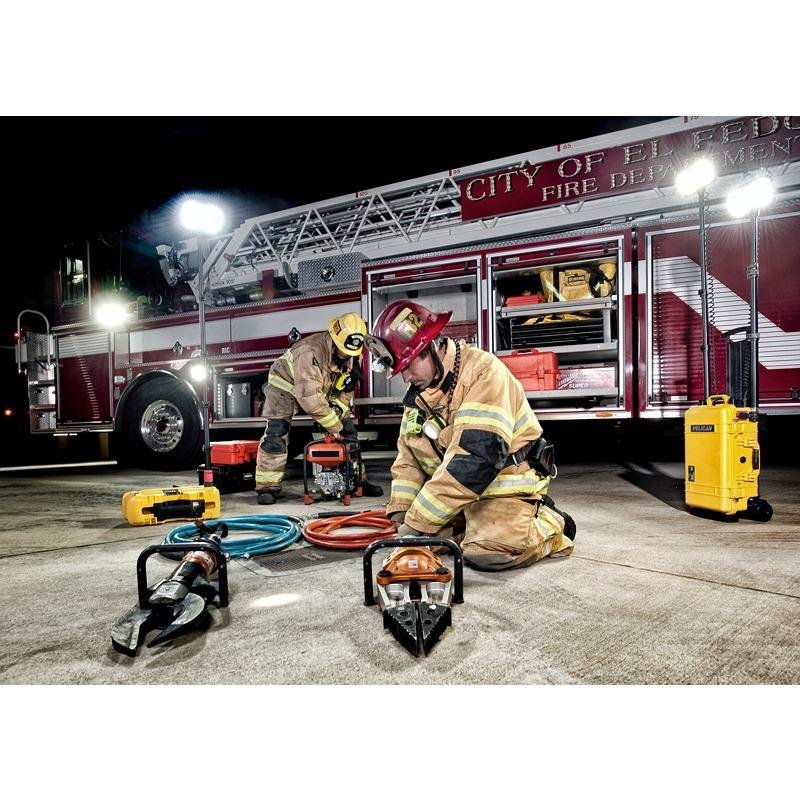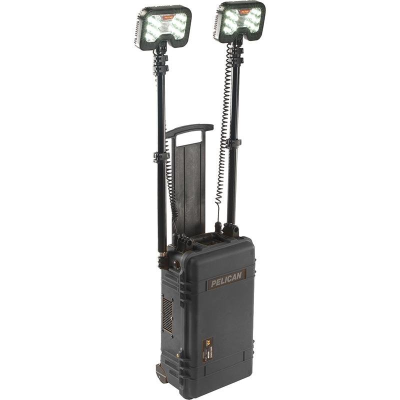 The Pelican 9460M Remote Area Lighting System (RALS) is a cutting-edge lighting solution designed for mobility and versatility, making it ideal for various outdoor and emergency applications. Engineered with a robust set of XL wheels, the 9460M ensures easy transport over rough terrain, allowing users to take powerful lighting wherever needed. This innovative system utilizes next-generation LEDs to deliver an impressive output of up to 12,000 lumens, with each of the two articulating light heads providing 6,000 lumens. The Intelligent Control System enhances user experience by calculating and displaying current battery life, enabling users to adjust light intensity, select desired run times, or choose from three pre-set power levels. The dual telescopic masts extend to nearly 6 feet, providing optimal light coverage for any situation. For extended use, the 9460M can operate continuously on wall power, ensuring that users are always prepared. The system is housed in a durable Pelican Protector Case, making it compact and easy to transport. Additionally, it features a multi-terrain trolley with a retractable pull handle and stainless steel ball-bearing wheels for smooth mobility. The 9460M also includes a 12-volt power port with a dual USB adapter, allowing users to power peripheral devices. With silent operation, cool operating temperatures, and no exhaust emissions, this lighting system is both environmentally friendly and user-friendly. The Pelican 9460M is RoHS and CE compliant, ensuring it meets high safety and environmental standards.
