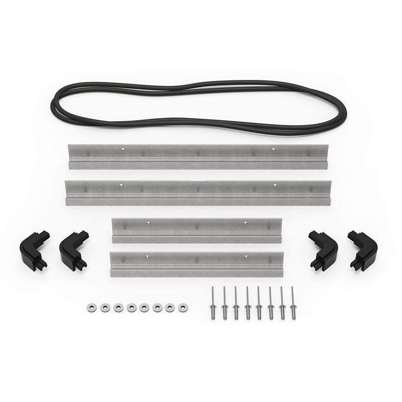 - Included Components: 4 molded corner pieces, 1 silicone perimeter gasket, 2 front and back rails, 2 side rails, 8 rivets, 8 sealing washers