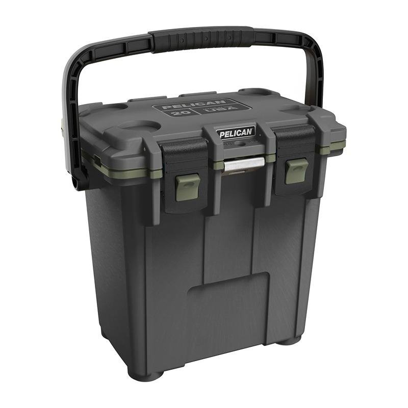 The Pelican IM 20QT Elite Cooler in Gunmetal/OD Green (Model 20Q-14-GNMTLOD) is the perfect companion for outdoor enthusiasts who demand both performance and durability. Constructed from high-quality Polypropylene (PP), this cooler is designed to withstand the rigors of any adventure, whether you're camping, fishing, or enjoying a day at the beach. With 0.78 inches of polyurethane insulation and a freezer-grade gasket, it provides exceptional ice retention, keeping your food and beverages cold for extended periods. The cooler features an over-molded carry handle with a rubber grip, ensuring comfortable transport even when fully loaded. Additionally, it includes four self-draining molded-in cup holders, allowing you to keep your drinks close at hand without the worry of spills. The unique press and pull latches provide a secure closure while remaining easy to operate, and the anti-shear hinge system enhances durability, preventing wear and tear over time. The stylish gunmetal and OD green color scheme not only looks great but also blends seamlessly with outdoor environments. With its robust construction and thoughtful design, the Pelican IM 20QT Elite Cooler is an essential tool for anyone who enjoys spending time outdoors, ensuring that you can focus on your adventure while keeping your refreshments perfectly chilled.