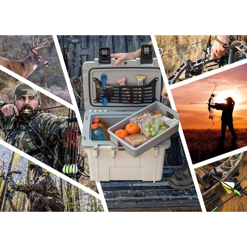 The Pelican IM 20QT Elite Cooler in Tan/White (Model 20Q-1-TANWHT) is engineered for outdoor enthusiasts who demand durability and performance. Constructed from high-quality Polypropylene (PP), this cooler is designed to withstand the rigors of any adventure, whether you're camping, fishing, or tailgating. Its impressive 0.78 inches of polyurethane insulation, combined with a freezer-grade gasket, ensures exceptional ice retention, keeping your beverages and food cold for extended periods. The cooler features an over-molded carry handle with a rubber grip, providing comfort and ease of transport. Additionally, it includes four self-draining molded-in cup holders, allowing you to keep your drinks close at hand without the worry of spills. The unique press and pull latches ensure a secure closure while remaining easy to operate, and the anti-shear hinge system enhances durability, preventing wear and tear over time. With its robust construction and thoughtful design, the Pelican IM 20QT Elite Cooler is the perfect companion for any outdoor activity, ensuring that you can enjoy your time in nature without compromising on convenience or performance.