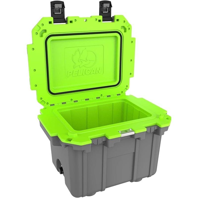 The Pelican IM 30QT Elite Cooler in Dark Grey/Emerald Green (Model: 30Q-1-DKGRYEGRN) is the ultimate companion for outdoor enthusiasts, designed to withstand the rigors of any adventure while providing exceptional performance. Built on the legacy of Pelican Products, Inc., which has safeguarded defense, emergency, and scientific expedition equipment since 1976, this cooler embodies the same durability and reliability. Featuring advanced polyurethane insulation combined with a freezer-grade gasket, it ensures extreme ice retention, keeping your food and beverages cold for extended periods. The cooler is equipped with built-in bottle openers for added convenience, while the over-molded carry handle with a rubber grip allows for easy transport, even when fully loaded. With four self-draining molded-in cup holders, you can enjoy your drinks without worrying about spills. The unique press & pull latches provide a secure closure, and the anti-shear hinge system enhances the cooler's durability, making it resistant to wear and tear. Whether you're camping, tailgating, or enjoying a day at the beach, the Pelican IM 30QT Elite Cooler is designed to meet your needs, combining functionality with rugged aesthetics.