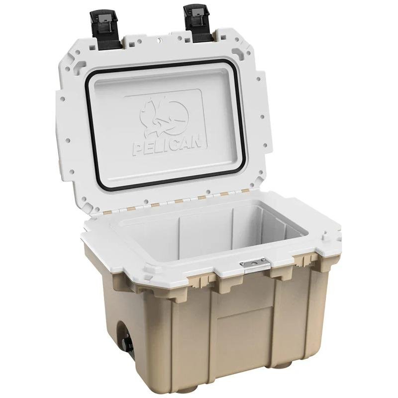The Pelican IM 30QT Elite Cooler in Tan/White (Model: 30Q-1-TANWHT) is the perfect solution for outdoor enthusiasts seeking a reliable and durable cooler that excels in performance. Built on the legacy of Pelican Products, Inc., which has been safeguarding critical equipment for defense, emergency, and scientific expeditions since 1976, this cooler is designed to withstand the harshest conditions. Featuring advanced polyurethane insulation paired with a freezer-grade gasket, it delivers exceptional ice retention, ensuring your food and beverages stay cold for extended periods. The cooler is equipped with built-in bottle openers for added convenience, making it easy to enjoy your favorite drinks on the go. The over-molded carry handle with a rubber grip provides comfort during transport, while the four self-draining molded-in cup holders allow for easy access to your beverages without the worry of spills. The unique press & pull latches ensure a secure closure, and the anti-shear hinge system enhances durability, making this cooler a reliable companion for any adventure. Whether you're camping, tailgating, or enjoying a day at the beach, the Pelican IM 30QT Elite Cooler combines functionality with rugged aesthetics, making it an essential addition to your outdoor gear.