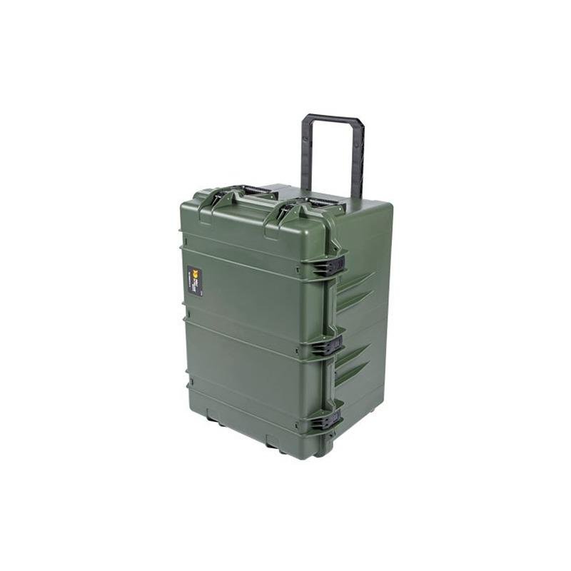 The Pelican IM3075 Storm Case is a robust and versatile storage solution designed to protect your valuable equipment in the most demanding environments. Built with the same legendary DNA as the Pelican Protector Case, this case features a unique Press and Pull latch system that locks automatically yet opens effortlessly with a gentle touch. Engineered in the USA, the IM3075 is constructed from high-quality materials, ensuring durability and reliability. It is equipped with seven Press & Pull latches that provide secure closure while allowing for easy access. The case also includes in-line wheels for smooth transportation, making it ideal for travel or fieldwork. Two double-layered, soft-grip handles enhance portability, while two padlockable hasps offer additional security for your contents. The powerful hinges ensure that the case remains sturdy under pressure, and the O-ring seal provides an airtight and watertight barrier, protecting your gear from dust, moisture, and other environmental hazards. Whether you are a professional photographer, a military personnel, or an outdoor enthusiast, the Pelican IM3075 Storm Case is designed to meet your needs, providing peace of mind that your equipment is safe and secure.