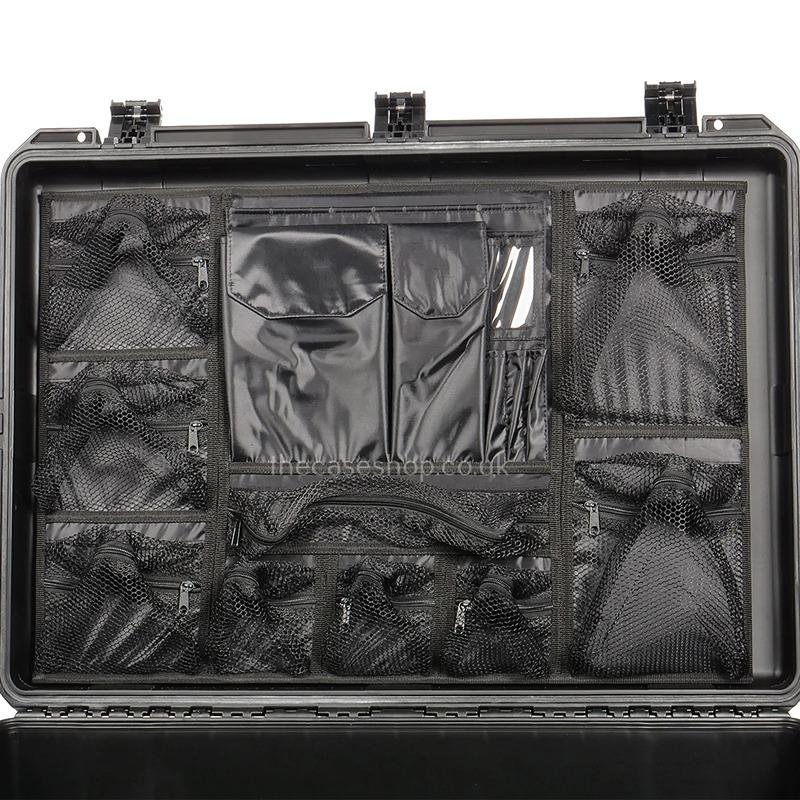 The Pelican KIT, UTILITY ORGANIZER, iM29XX - IM29XX-UTILITYORG is an essential accessory designed to help you efficiently organize and protect your gear. This utility organizer is specifically compatible with the Pelican iM2950 and iM2975 Storm Travel Cases, ensuring a perfect fit for your storage needs. The kit includes a versatile utility organizer featuring nine mesh pouches that allow for easy visibility and access to your items, an open folder for documents or flat items, and two pockets with flaps for secure storage of smaller essentials. Additionally, it comes equipped with three pen holders and a transparent card holder, making it ideal for professionals who require quick access to writing instruments and identification. The organizer is designed with a durable black Velcro hook, allowing for easy attachment and removal from your travel case. Whether you are a photographer, technician, or outdoor enthusiast, this utility organizer provides a practical solution to keep your tools and accessories neatly arranged and readily accessible. Its robust construction ensures that your gear is well-protected during transport, while the thoughtful design elements enhance functionality and convenience. With the Pelican KIT, UTILITY ORGANIZER, you can travel with confidence, knowing that your equipment is organized and secure.