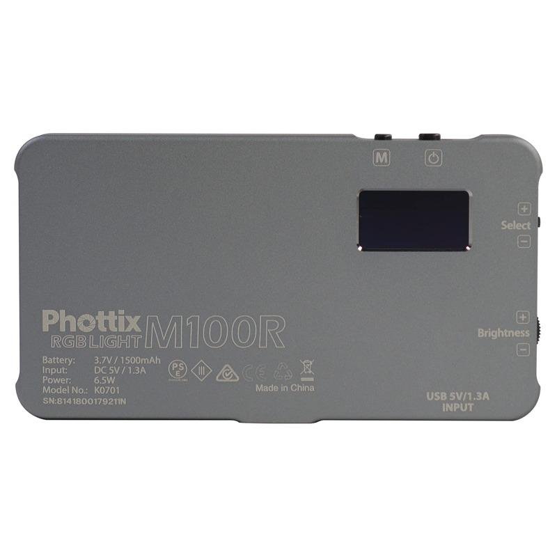 The Phottix M100R RGB Light is a cutting-edge, next-generation light designed to meet the needs of mobile photographers, videographers, and content creators. Using the latest flicker-free LED technology, this ultra-thin and lightweight light provides a high-quality, stable light source for photos, videos, vlogging, interviews, live streaming, and more. The M100R offers adjustable brightness and a wide color temperature range from 2500K (warm) to 8000K (cool), giving users full control over their lighting setup. It features a 0-360° color hue and saturation adjustment, allowing for precise customization to achieve the perfect lighting effect. With a CRI of 96+, the M100R ensures accurate and natural color rendering, making it ideal for professional and creative work. Additionally, the light includes 21 preset multi-scene lighting effects, offering flexibility for various shooting environments. The M100R is also designed with practicality in mind, as it doubles as a power bank, allowing you to charge your devices on the go. The compact design makes it portable and easy to use for both indoor and outdoor shoots, including weddings, portraits, macro shots, and live streaming. With long-life, low-heat LEDs and a durable build, the Phottix M100R is perfect for creators who need reliable, versatile lighting in a small, efficient package.