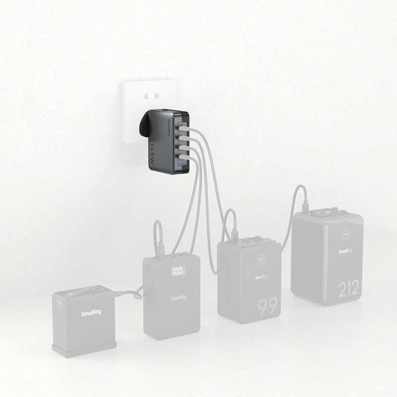 The SmallRig 145W 4-Port PD Power Adapter (UK Standard) 4749 is a highly efficient and versatile charging solution designed to meet the needs of various electronic devices. With a total output power of 145W, it features four USB-C ports that support fast charging for a wide range of devices, including V-mount batteries, NP-F batteries, smartphones, computers, and rechargeable camera batteries. USB-C1 and C2 ports support up to 140W of output, making them ideal for high-power devices, while USB-C3 and C4 offer up to 45W of power, ensuring efficient charging for less power-hungry devices. The adapter is equipped with short-circuit and overcurrent protection on all ports, providing a safe charging experience. Its compact design makes it portable and convenient for travel or daily use. A built-in power status indicator light makes it easy to monitor charging progress—lighting up when power is connected and turning off when disconnected. This power adapter is an essential tool for professionals on the go, ensuring fast, safe, and efficient charging of multiple devices simultaneously.