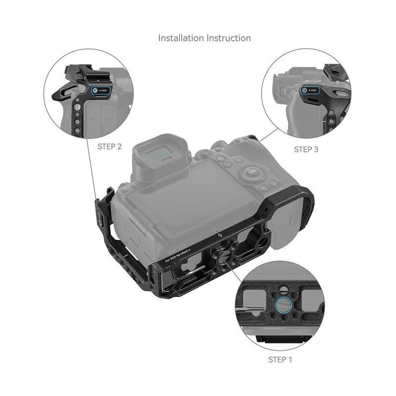 The SmallRig 4161 “Black Mamba” Camera Cage for Canon EOS R6 Mark II is designed to provide robust protection while offering versatile accessory mounting options for enhanced filmmaking. The cage securely locks the Canon EOS R6 Mark II in place using a 1/4”-20 screw at the bottom and two locking adapters on the sides, with rubber cushions that help prevent scratches on your camera. Featuring the signature “Black Mamba” design, the cage allows for full access to all the camera’s buttons and controls without obstruction, ensuring a seamless user experience. It is equipped with a variety of mounting points for attaching essential accessories such as the ARRI 3/8”-16 threaded holes for a top handle (3765/2165C) and monitor mount (2903B), 1/4”-20 threaded holes for a side handle (4016), and a built-in cold shoe mount for attaching microphones and LED video lights. The cage also includes dedicated shoulder and wrist strap holes for additional rigging flexibility, allowing you to securely attach a hand strap (3848) or shoulder strap (PSC2428). The camera cage features an anti-twist three-point locking system to ensure stability during shooting, and it includes a built-in key for easy installation and release. Additionally, the cage is equipped with an integrated Arca-Swiss quick-release plate, enabling quick and convenient attachment to tripods or gimbals. This lightweight yet durable cage weighs just 158g and offers a compact design that does not add unnecessary bulk, making it an ideal choice for filmmakers who want a functional, protective solution for their Canon EOS R6 Mark II camera.