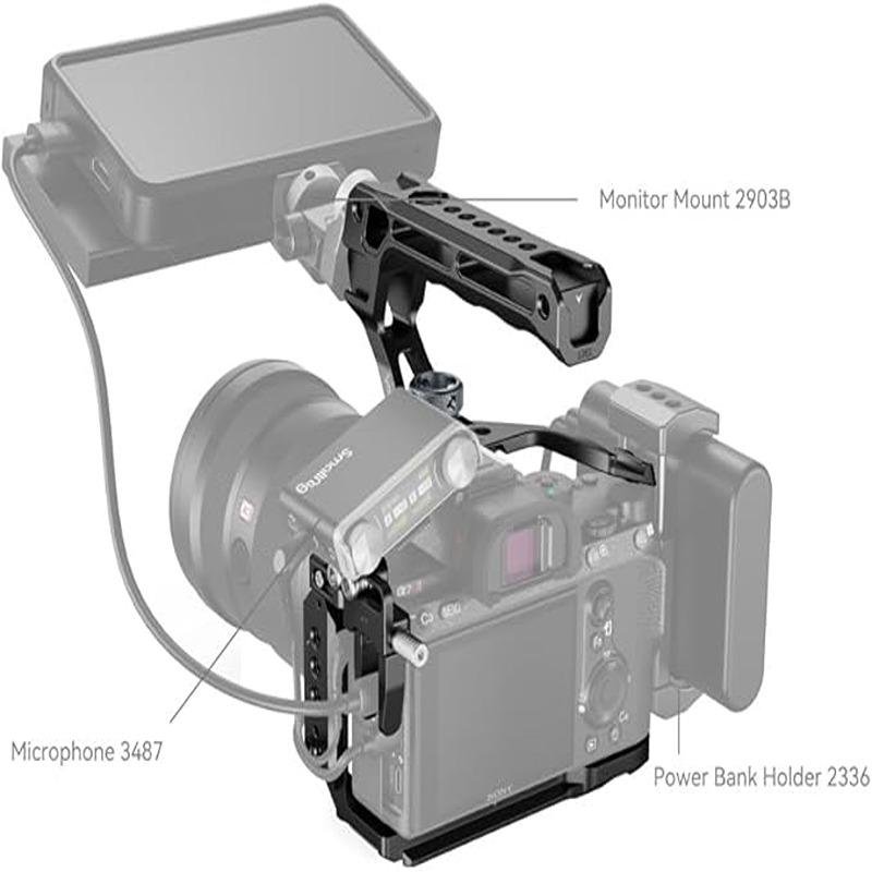 The SmallRig Cage Kit for Sony Alpha 7 III / Alpha 7R III (4198) is a versatile and robust solution for protecting your camera and expanding its functionality. This high-quality cage is made from durable aluminum, offering a lightweight yet sturdy design. It is specifically tailored to fit the Sony Alpha 7 III and Alpha 7R III, providing a secure and snug fit to prevent any twisting or wobbling during use. The cage features multiple 1/4"-20 and 3/8"-16 threaded holes for attaching a wide range of accessories, including microphones, lights, and monitors. The inclusion of an ARRI-style locating hole ensures that accessories stay securely mounted and prevent rotation. With its ergonomic design, the cage maintains full access to the camera’s controls, ports, and battery compartment, ensuring that you can continue operating your camera without any obstruction. The included NATO rail allows for quick attachment of compatible handles, while rubber pads at the bottom provide additional protection against scratches. Whether you're shooting handheld or using additional support equipment, this cage enhances the overall handling and versatility of your camera. Perfect for both photographers and videographers, the SmallRig Cage Kit offers an optimal balance of protection, functionality, and ease of use. This kit is a must-have for anyone looking to improve their Sony Alpha 7 III or Alpha 7R III shooting experience.