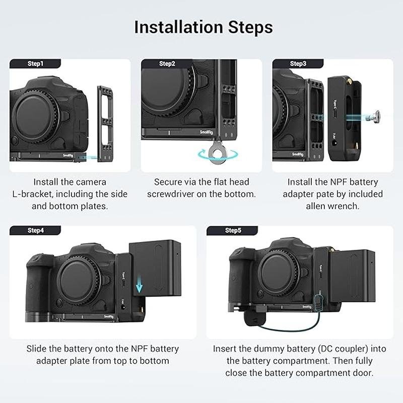 The SmallRig EOS R5/R6/R5 C Power Supply Kit 3768 offers a lightweight and efficient solution designed to extend the shooting time for Canon EOS R5, R6, and R5 C cameras, making it ideal for long sessions such as time-lapse photography. With a quick-release side plate, this kit ensures easy transitions between different shooting setups, making it perfect for various filming environments. Its ultralight and slim profile enhances portability, allowing photographers to carry it effortlessly during outdoor adventures like hiking or climbing. The spindle spanner, designed to fit the camera’s battery door curve, provides a more secure grip, ensuring that the power supply kit stays firmly in place while shooting. Additionally, the built-in magnetic spanner makes assembly and disassembly quick and easy, enhancing the overall user experience. Whether you're shooting in the studio or outdoors, this power supply kit delivers reliable power for extended shooting sessions while maintaining ease of use and portability.