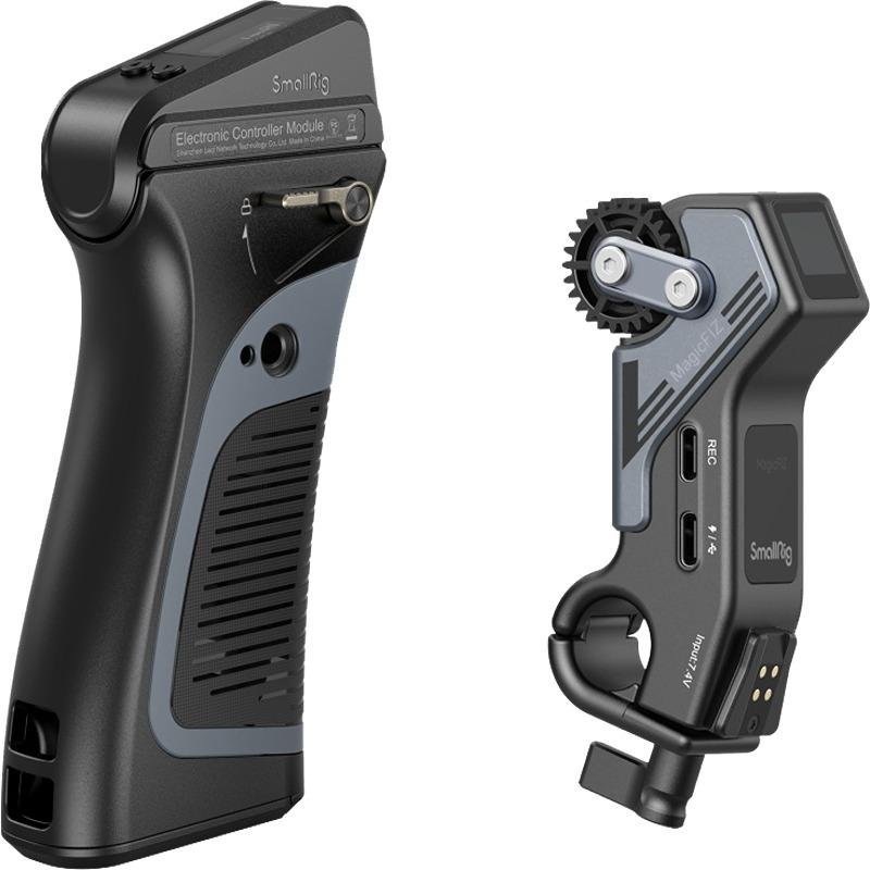 The SMALLRIG MagicFIZ Wireless Follow Focus Handgrip Kit (3782) is a professional-grade camera control solution that ensures precise focus adjustments for filmmakers and videographers. With its high-precision BLDC control algorithm and anti-interference encryption algorithm, this kit provides an unparalleled low-latency follow focus experience, allowing for smooth, accurate focus changes during video shoots. The wireless range extends up to 100 meters in open areas, offering maximum flexibility on set. The system is designed with multiple power supply options, including compatibility with LP-E6 batteries for extended runtime and the option to power the focus motor via USB-C cables. Additionally, the Wireless Receiver Motor can be powered by an NP-F battery plate or by using V-Mount batteries via DC or D-Tap to USB-C cables, ensuring versatile power solutions for various setups. Ergonomically designed, the wireless handgrip is comfortable to hold for both left and right-handed users, with anti-twist 1/4"-20 threaded holes on both sides to attach Handgrip Adapters. The handgrip is also equipped with an OLED screen for easy monitoring of settings and adjustments. Compact, durable, and highly adaptable, the SMALLRIG MagicFIZ Wireless Follow Focus Handgrip Kit offers a seamless and efficient tool for professional focus control on any production.