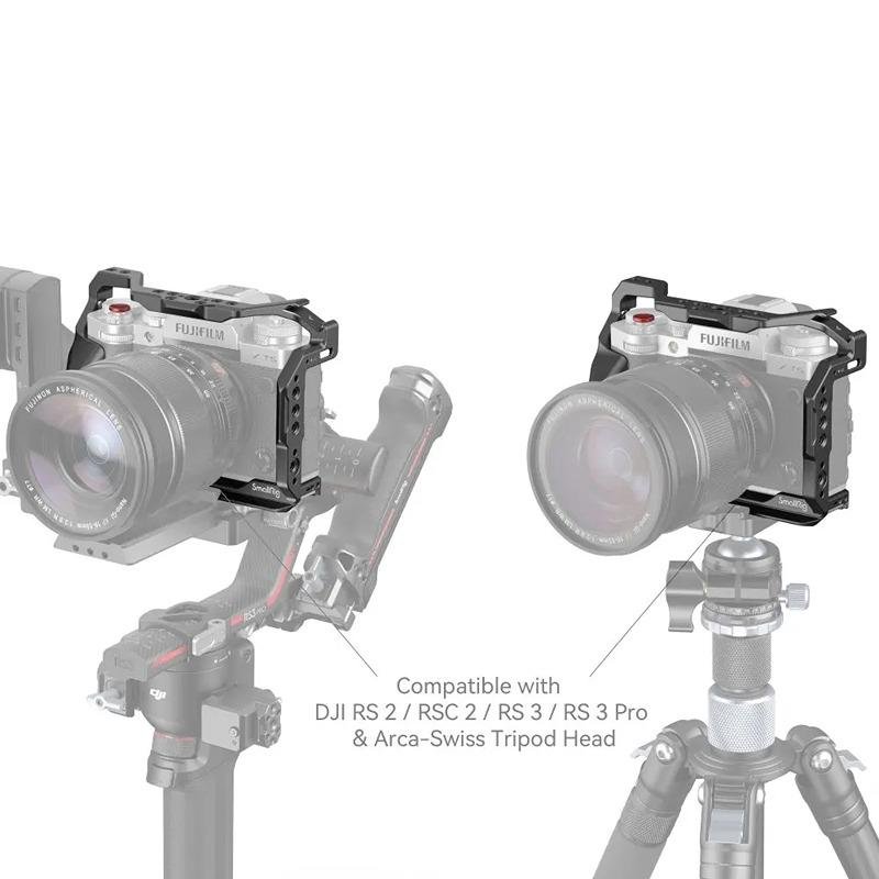 The SmallRig Multifunctional Cage for FUJIFILM X-T5 4135 is designed to offer comprehensive protection and enhanced versatility for your camera rig, providing both security and convenience during shooting. This full cage design ensures complete safeguarding of the FUJIFILM X-T5, while the ergonomic structure enhances grip, offering superior handling comfort and stability. The camera is securely mounted within the cage with screws on the bottom and sides, preventing any unwanted movement. The cage features multiple accessory mounting options, including 1/4"-20 and 3/8"-16 threaded holes, ARRI 3/8"-16 locating holes, NATO rails, a QD port, and a cold shoe mount, providing versatility for various setups and scene adaptability. The integrated Arca-Swiss plate on the bottom enables quick release, allowing rapid attachment to tripods and gimbals, making it ideal for smooth transitions between shots. In addition, the cage includes an integrated shutter button that offers a more tactile and responsive shooting experience, improving your workflow and control. Whether you’re a professional filmmaker or an enthusiast, the SmallRig Multifunctional Cage for FUJIFILM X-T5 provides essential protection, improved handling, and the flexibility to mount a wide array of accessories, helping you create high-quality content with ease.