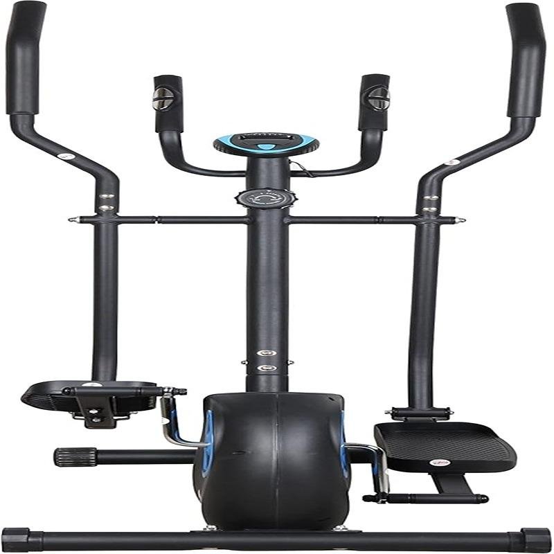 The SPORTS+ Bike Elliptical GymboPro 3KG – GB-1039E is a versatile and compact 2-in-1 elliptical and exercise bike, ideal for home workouts that target both the upper and lower body. Designed to provide a smooth, low-impact cardio workout, this machine combines the benefits of a traditional exercise bike with the motion of an elliptical trainer, making it perfect for improving cardiovascular health, burning calories, and toning muscles without putting stress on joints. The 3kg flywheel provides consistent resistance, allowing for fluid movement across all 8 manually adjustable resistance levels. Its built-in pulse sensors and LCD monitor help users track essential metrics like time, speed, distance, calories burned, and heart rate, providing the data needed for performance monitoring and goal-setting. The handlebars and pedals are designed to ensure ergonomic motion and grip, promoting natural body movement during exercise. The seat is both vertically and horizontally adjustable, catering to users of different heights and ensuring comfort over extended sessions. Compact in design yet durable in construction, the GB-1039E is equipped with sturdy transport wheels for easy relocation and non-slip pedals for enhanced safety. Whether you're beginning your fitness journey or seeking an efficient full-body workout from home, the SPORTS+ Bike Elliptical GymboPro 3KG delivers reliable performance, versatility, and comfort in a single, user-friendly machine.
