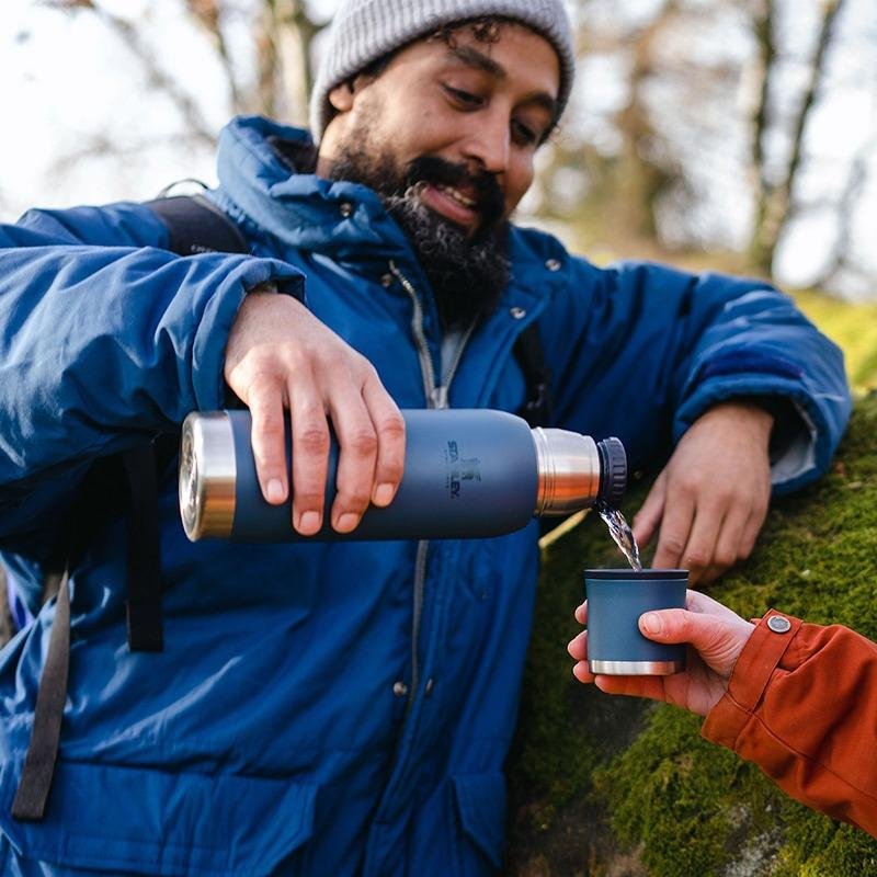 The Stanley ADV Flask 1L/1.1Qt To-Go Bottle in Abyss is the perfect companion for outdoor enthusiasts and everyday adventurers alike. Crafted with a rugged design and built to withstand the rigors of any journey, this flask is made from high-quality stainless steel that ensures durability and resistance to rust. Its double-wall vacuum insulation keeps your beverages hot or cold for hours, making it ideal for coffee, tea, or refreshing water during hikes, camping trips, or daily commutes. The sleek, modern design features a wide mouth opening for easy filling and cleaning, while the leak-proof lid guarantees that your drinks stay securely contained, preventing spills in your bag. The flask is also equipped with a convenient carry handle, allowing for easy transport wherever you go. With a capacity of 1 liter (1.1 quarts), it provides ample hydration without being overly bulky. The Abyss color adds a stylish touch, making it not only functional but also visually appealing. Whether you’re hitting the trails or just need a reliable bottle for your daily hydration needs, the Stanley ADV Flask is designed to meet your demands with style and efficiency.