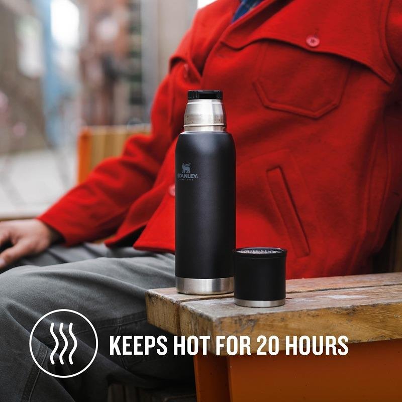 The Stanley ADV Flask 750ml/25oz To-Go Bottle in Black is the ultimate hydration solution for those who value durability and style in their everyday adventures. Constructed from high-quality stainless steel, this flask is engineered to withstand the demands of both outdoor excursions and urban commutes. Its double-wall vacuum insulation technology ensures that your beverages maintain their temperature for hours, whether you’re enjoying a hot coffee during a chilly morning hike or sipping ice-cold water on a hot summer day. The flask features a wide mouth opening, making it easy to fill, pour, and clean, while the leak-proof lid provides peace of mind, allowing you to toss it into your bag without fear of spills. The sleek black powder-coated finish not only enhances grip but also adds a touch of sophistication, making it suitable for any setting. With a generous capacity of 750ml, this flask is perfect for long days out, ensuring you stay hydrated without constant refills. The integrated carry handle adds convenience for on-the-go lifestyles, and its compact design fits seamlessly into most cup holders, making it an ideal companion for road trips or daily commutes. Whether you’re hitting the trails, heading to the gym, or simply enjoying a day out, the Stanley ADV Flask is designed to keep up with your active lifestyle while providing a reliable and stylish way to stay hydrated.