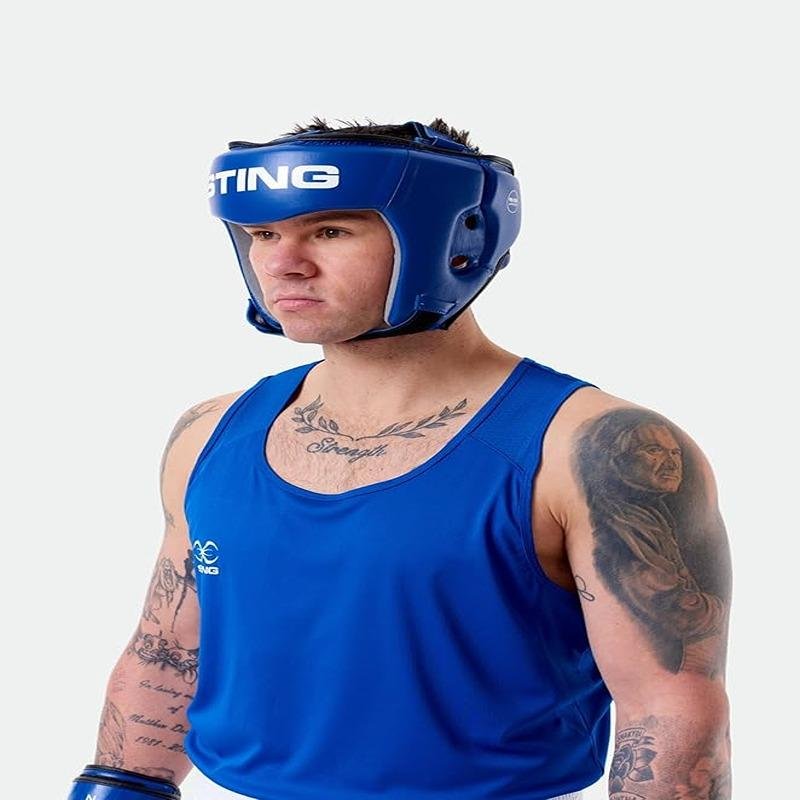 The STING COMPETITION AIBA HEAD GUARD - S2AH-0201 is designed for boxers who demand the best in performance and protection. Approved by the AIBA, this head guard is built with Neo-Gel Fusion Technology to provide exceptional shock absorption, reducing the impact of strikes during high-intensity bouts. The premium leather hide outer layer ensures long-lasting durability, while the precision design adheres to AIBA guidelines, making it perfect for competitive boxing. Anatomically shaped, the head guard provides a secure fit, minimizing slip and offering maximum stability, so you can focus entirely on the fight. The advanced Neo-Gel material is strategically placed to absorb and manage strike energy, providing the boxer with more endurance throughout the match. With high levels of padding on the brow, it offers added protection to prevent cuts and bruising, ensuring the athlete remains focused and safe. This head guard's ergonomic design ensures a snug fit that offers comfort without sacrificing protection. Whether used for intense training or official competition, the STING COMPETITION AIBA HEAD GUARD - S2AH-0201 ensures that fighters are equipped with the best head protection available. With its combination of superior shock absorption, strategic padding, and AIBA approval, this head guard allows athletes to perform at their highest level with confidence and security.