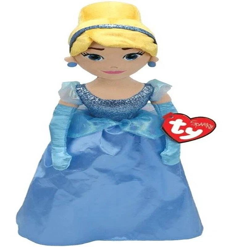 The TY Disney Princess Cinderella with Sound – 02412 is a charming and magical plush companion that brings the beloved fairytale to life through both design and interactive features. Designed by TY, known for its iconic plush creations, this soft Cinderella doll is dressed in her iconic ballgown, featuring shimmering blue fabric, elegant detailing, and her signature blonde updo, making her instantly recognizable and adored by Disney Princess fans. What sets this plush apart is its sound feature—press on her to hear enchanting phrases or music inspired by Cinderella’s timeless story, adding an immersive and delightful layer of interactivity that enhances storytelling and imaginative play. The softness of the high-quality plush makes her perfect for cuddling, while the sound chip provides a magical experience that children will treasure. Whether used as a comforting bedtime buddy, a daytime playmate, or as a beautiful display piece in a child’s room, Cinderella is sure to inspire dreams and bring joy to fans of all ages. TY’s signature Heart Tag adds collectible charm, and as an officially licensed Disney product, it ensures authenticity and attention to detail. Lightweight and perfectly sized for young hands, this plush is ideal for at-home play or for taking along on royal adventures. The TY Disney Princess Cinderella with Sound combines classic fairytale elegance with modern playability, making it a memorable gift for birthdays, holidays, or any special occasion for the little princess in your life.