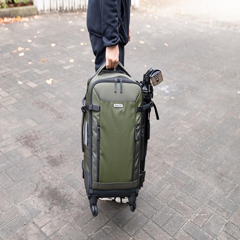 The Vanguard VEO SELECT 58T GR is a highly adaptable and durable travel bag designed for photographers and gear-heavy travelers. This bag is built to provide optimal organization, with numerous removable and customizable partitions that allow you to adjust the layout based on your specific storage needs. The left-outer pocket is designed specifically to carry a VEO tripod, making it a perfect companion for photographers who need to transport their tripod alongside other equipment. The bag offers four sturdy wheels that provide easy steering and maneuverability through crowded areas, while the versatile design allows it to be used as a backpack, hand-carried bag, or rolling trolley. Inside, the bag provides ample space to accommodate heavy gear loads, and the mesh screen holds your items securely in place when you open the pack, preventing anything from shifting or falling out. Constructed with thick cotton padding and ultra-strong materials, including durable stitching and buckles, this bag offers excellent protection for your equipment. It also comes with a total-coverage rain cover, ensuring your gear remains safe and dry during inclement weather. With a solid build and a stylish grey finish, the Vanguard VEO SELECT 58T GR is the perfect solution for photographers or travelers who need a reliable, well-organized, and durable bag for their gear.