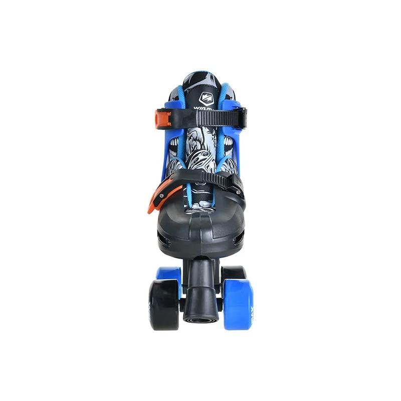 The Winmax QUAD SKATE BLUE - WME76800DS is an ideal choice for young skaters looking to experience roller skating with style and comfort. These adjustable quad roller skates come with an easy push-button adjustment system, allowing the skates to grow with your child’s feet. Featuring a lightweight plastic chassis and truck, the skates offer durability and stability for beginners and young skaters. The skates are designed with two new-style double safety buckles, ensuring a secure and snug fit for added safety while skating. A double stopper system provides enhanced control, making it easier for kids to stop and change directions safely. Equipped with 608Z steel bearings, the skates offer smooth and efficient rolling for an enjoyable skating experience. The 15mm thick lining adds comfort during extended skating sessions, ensuring kids can skate longer without discomfort. The 54#32mm PVC solid color wheels offer excellent grip, making it easier for kids to skate on various surfaces. Available in multiple sizes—SS (27-30#), S (31-34#), M (35-38#), and L (39-42#)—these skates are perfect for growing feet, offering a custom fit for different foot sizes. With their sleek blue design, these skates not only offer functionality but also a cool, stylish look. Whether skating indoors or outdoors, the Winmax QUAD SKATE BLUE is built to provide a safe, comfortable, and enjoyable experience for kids of all skill levels.