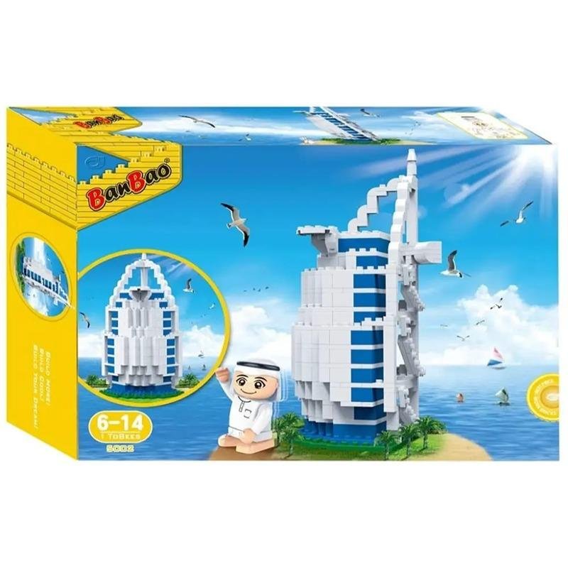 The BANBAO Burj Al Arab building set – POS03-BANBAO is a striking and educational construction toy that allows enthusiasts of all ages to recreate one of the world’s most iconic architectural landmarks—the Burj Al Arab. Towering at an impressive 80 cm in height once fully assembled, this model delivers a rewarding building experience that combines learning, patience, and fine motor skills development. The set includes a large number of precision-molded interlocking blocks made from durable, child-safe plastic, offering an enjoyable and safe building process. Designed for both kids and collectors, it is ideal for ages 6 and up, encouraging creativity and architectural curiosity. The final structure showcases the elegant sail-shaped silhouette of Dubai's famous hotel, making it an excellent display piece for home, school, or office. Each piece fits snugly for a sturdy build, while the detailed instructions make assembly smooth and engaging. Great for STEM learning, it not only fosters spatial reasoning and concentration but also introduces young minds to the world of design and engineering. With its elegant white and blue color scheme, the BANBAO Burj Al Arab brings a touch of sophistication to any collection and serves as a source of pride for those who enjoy the journey of constructing monumental structures from scratch. Whether used as an educational tool or as a unique decorative item, this set is a fantastic gift idea for budding architects and fans of global landmarks.